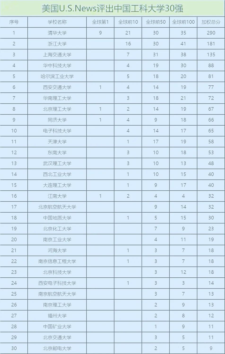 中国工科类高校里面的前三名,分别是清华大学、浙江大学和上海交通大学。这三所高校的核心工科都能位居世界前列。清华大学的计算机、人工智能、化学工程、环境工程、材料科学等学科竟然都被排到并列世界第一。清华大学的工科在世界都已经能挺进前五名,表现得极为突出。浙江大学的计算机学科排名世界第六,工程学位居世界第7,材料科学位居全球第10。此外,还有诸多学科都挺进世界50强。也体现出浙江大学强悍的科研实力,还有在学术方面的杰出成就。上海交通大学则是有7个学科位居全球前十,包括生物医药、电子信息、工程学以及船舶等学科都达到全球顶尖水平。更为重要的是,上海交大有38个学科挺进全球100强。 华中科技大学位居第四,华科共计有4个学科挺进全球前10,比如工程学学科位居全球第8,机械学科位居全球第10,这些都是学校实力的体现。 西安交通大学排名第六,作为传统的工科名校,机械工程学科位居世界第一,这是一个非常值得骄傲的成绩。还有学校的电气工程、工程学等学科都挺进全球前10,跻身世界一流行列。即使西安交通大学只是位于西部地区,但学科建设方面却一直坚持国际化,包括研究成果和学术创新等,西安交大的工科精度不断提高。