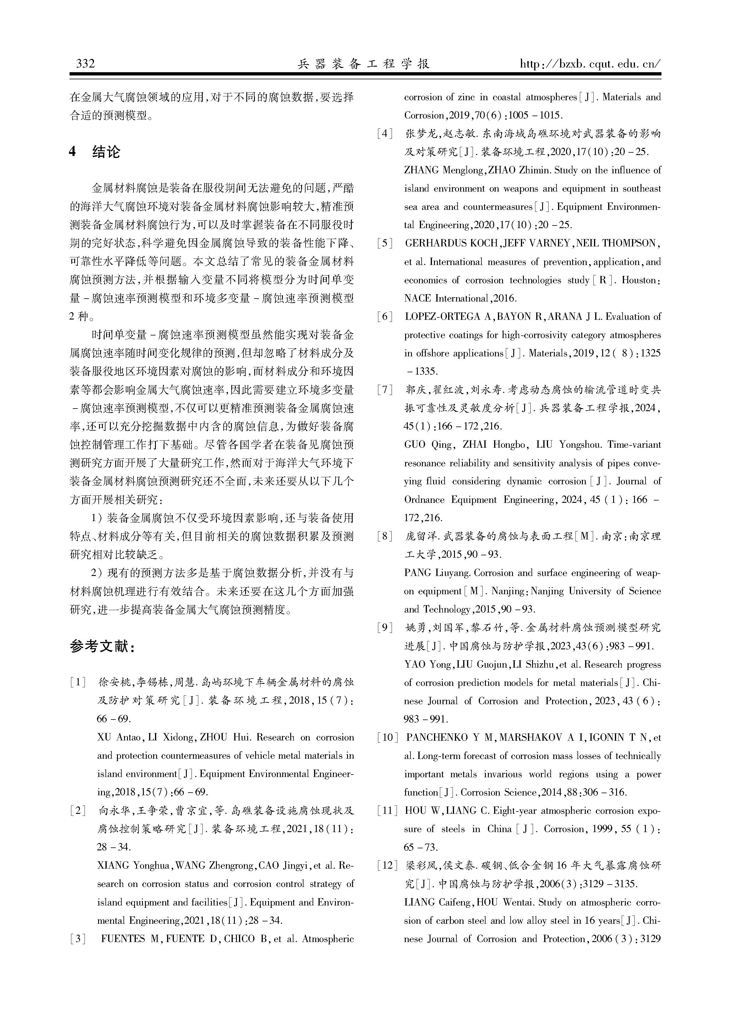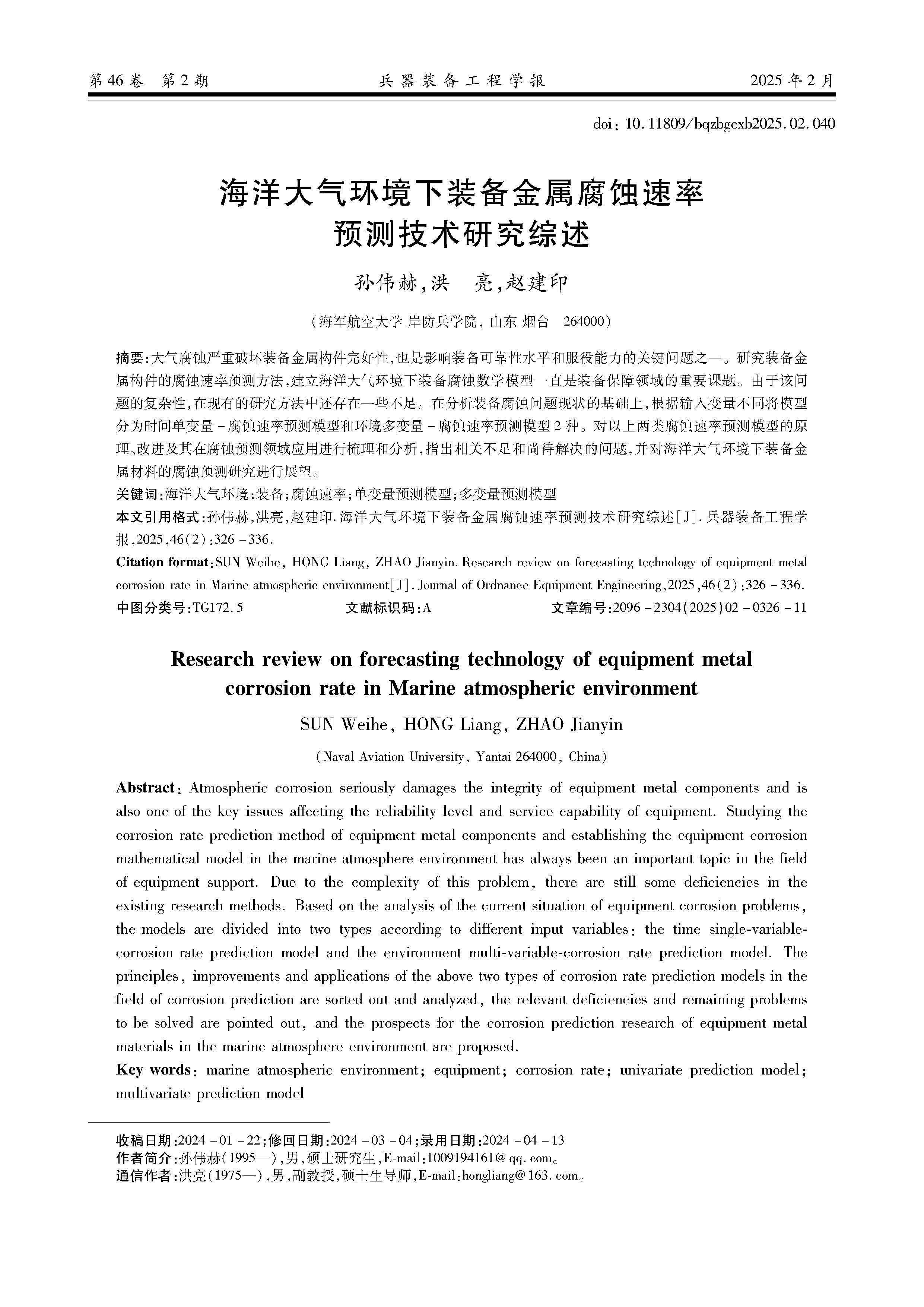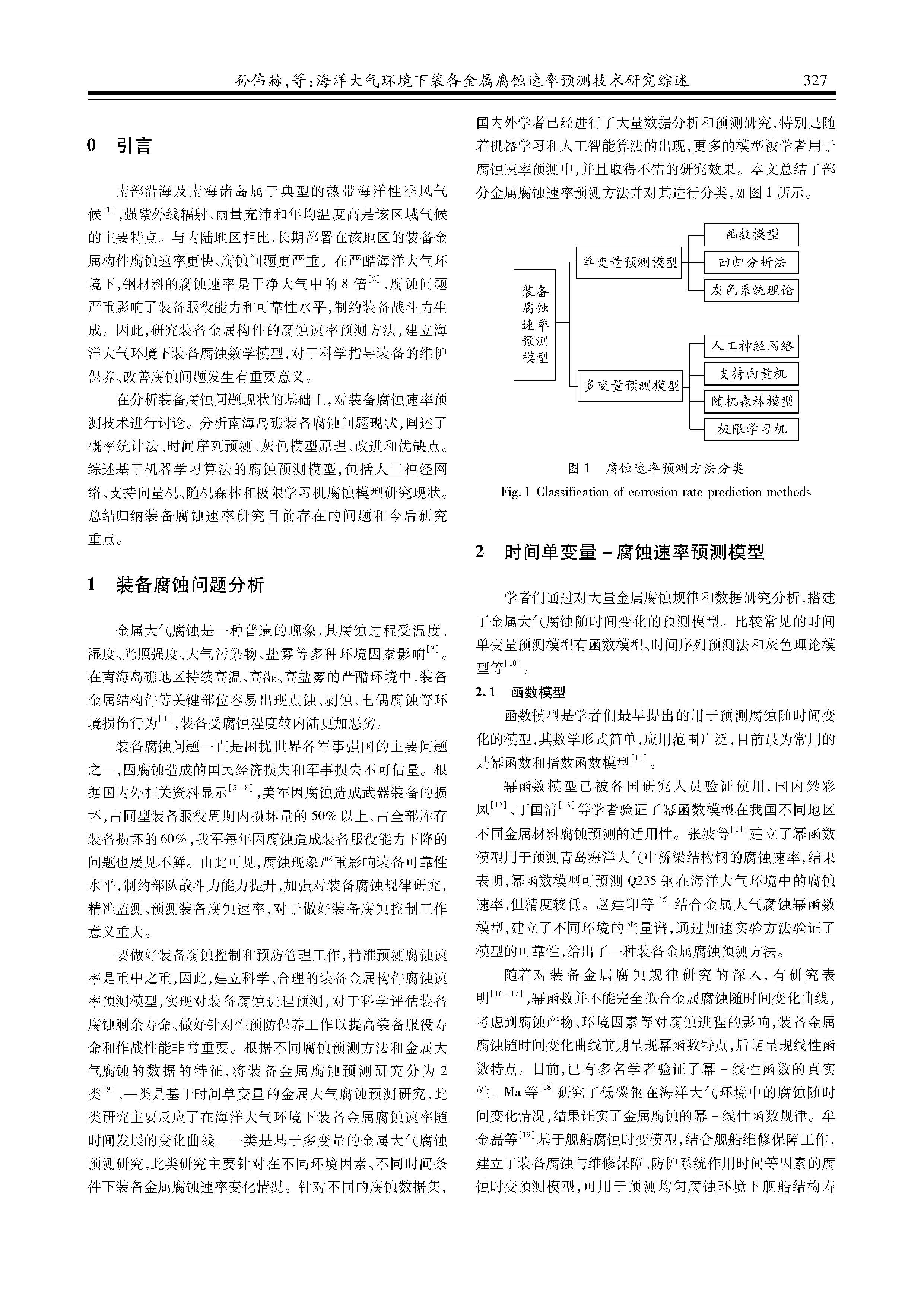 海洋大气环境下装备金属腐蚀速率预测技术研究综述