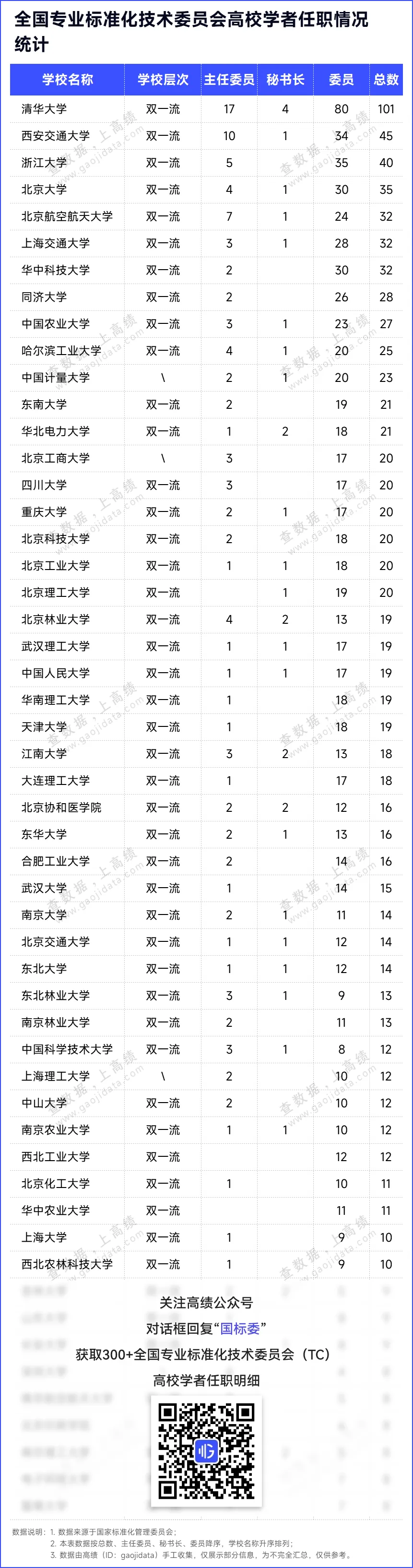 在上述名单中,有近30位高校学者担任全国专业标准化技术委员会主任委员,负责技术委员会全面工作。