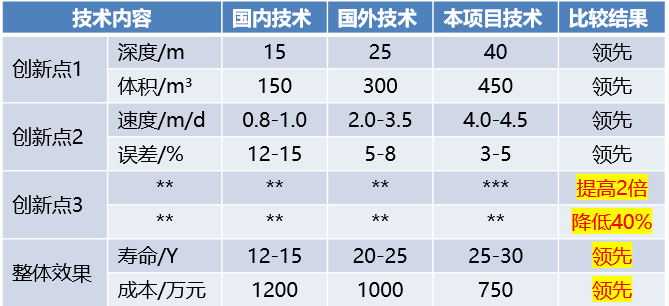 详细描写项目的技术内容和技术效果。注意三类奖各有其专用词,自然奖是发现点,发明奖是发明点,进步奖是创新点。