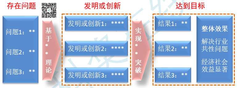 发明奖、进步奖:体现先进性、产业价值:子创新点、整体层面的技术指标及先进性比较,体现先进性;在国内外推广应用情况、经济社会效益,对国家和行业的意义;国内外获奖情况、成果评价等。