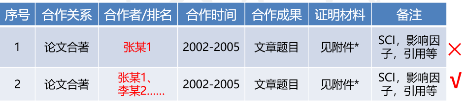 注:上表适用国家科技奖,省部级科技奖励不准重复报奖,不能放省部级获奖情况,社会科技奖可以放。