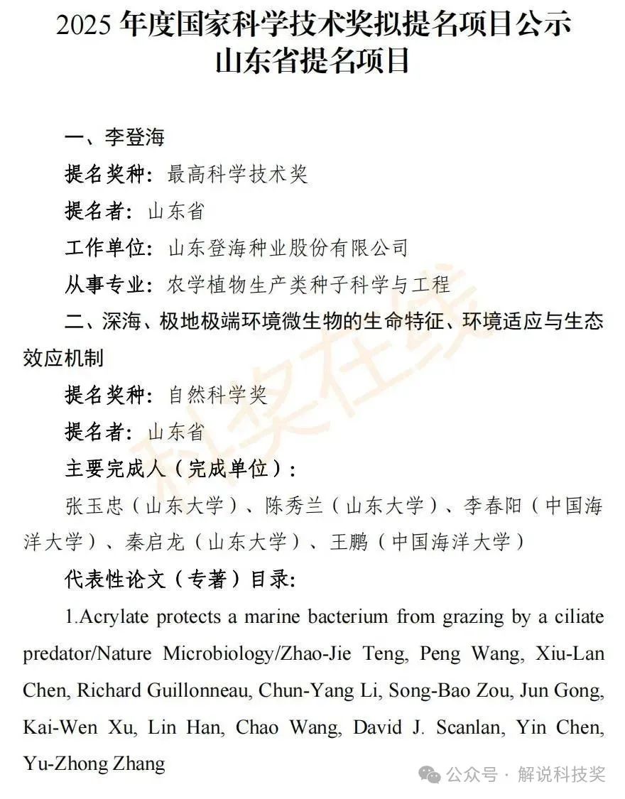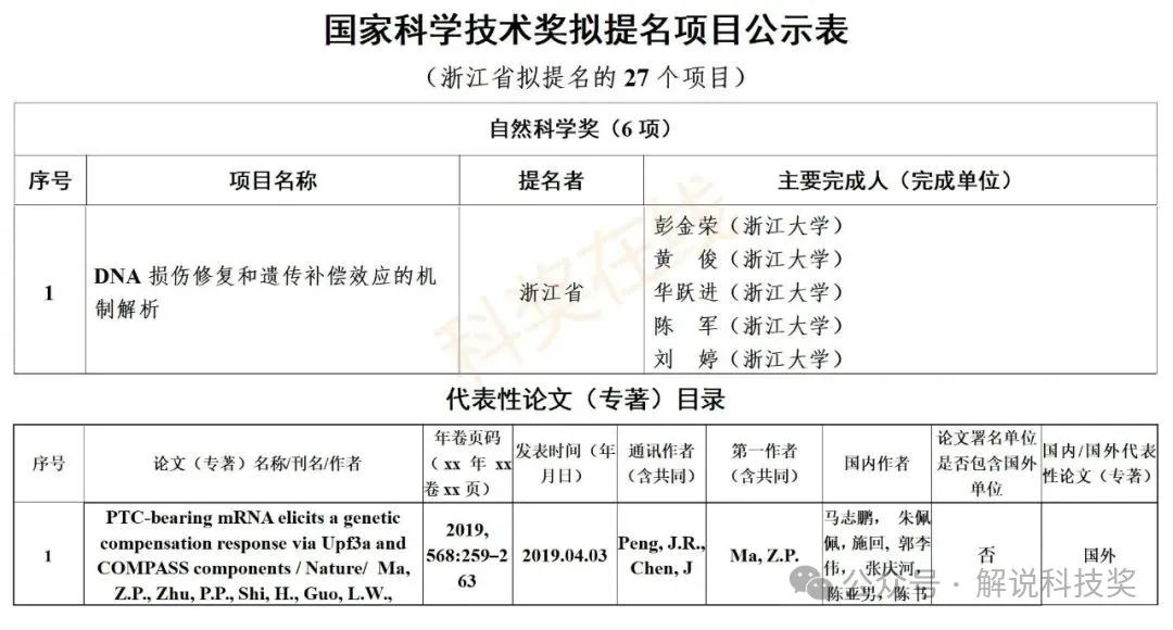 浙江省科学技术厅关于浙江省拟提名2025年度国家科学技术奖项目的公示