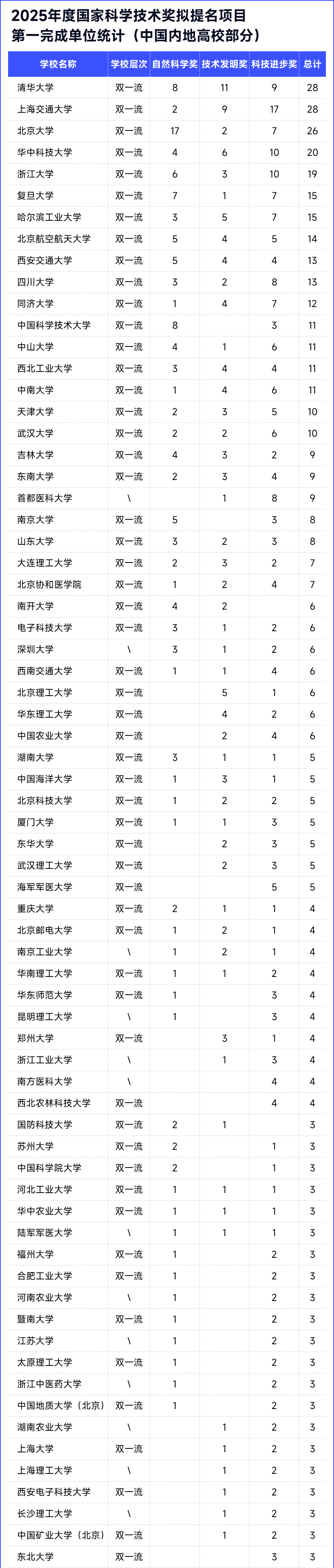 从拟提名项目看,北京大学拟提名国家自然科学奖最多,清华大学拟提名国家技术发明奖最多,上海交通大学拟提名国家科学技术进步奖最多。