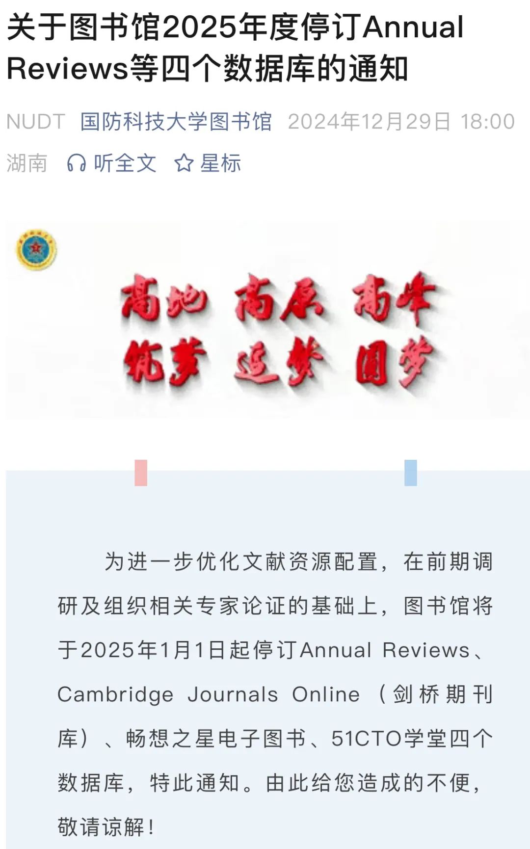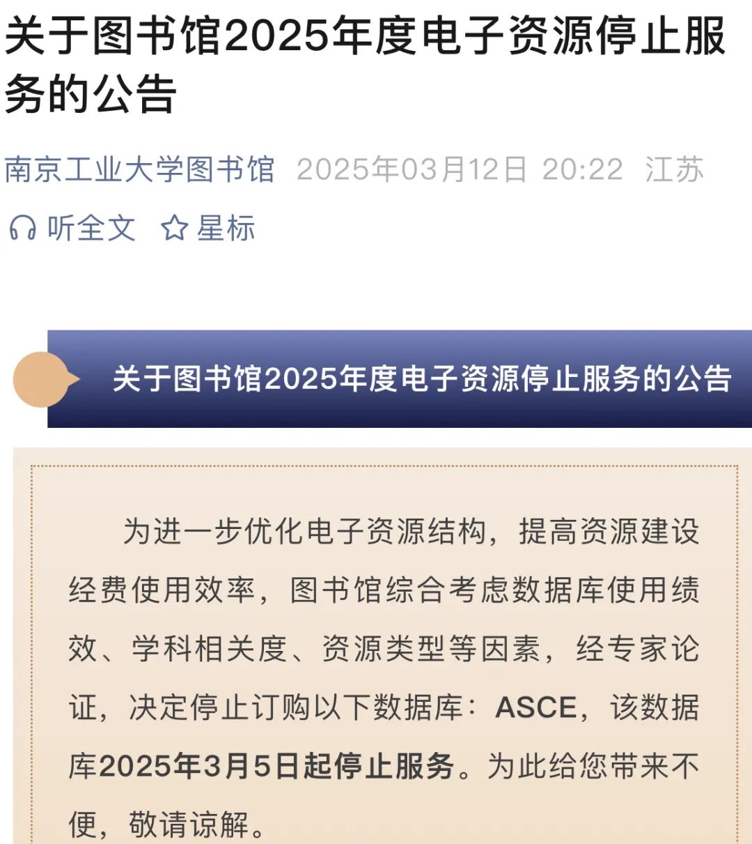 公告称,“近年来,爱思唯尔数据库价格每年涨幅为 8%,2025 年采购该数据库预算将达人民币 620 万元,高昂的费用对福州大学文献资源采购造成很大压力,经过反复调研、论证,图书馆暂停爱思唯尔ScienceDirect全文期刊数据库。