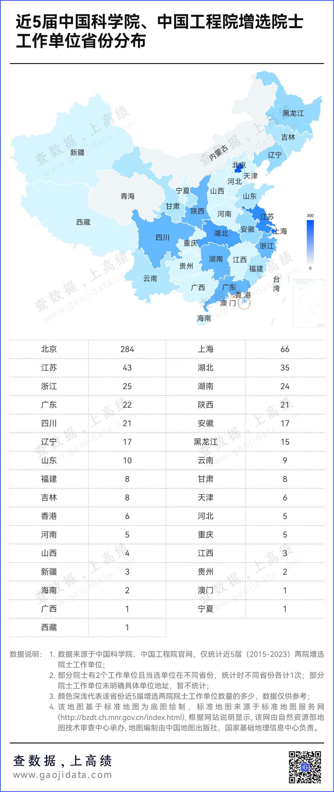 此前,高绩(ID:gaojidata)从获国奖、一级学会负责人、全国重点实验室主任等多个角度对2025两院院士增选进行展望,此次,高绩汇总了近5届(2015-2023)两院院士增选有效候选人名单,从地域分布的角度(注:统计两院公布的候选人名单的工作单位),看一看哪些地区有望新增较多的两院院士。