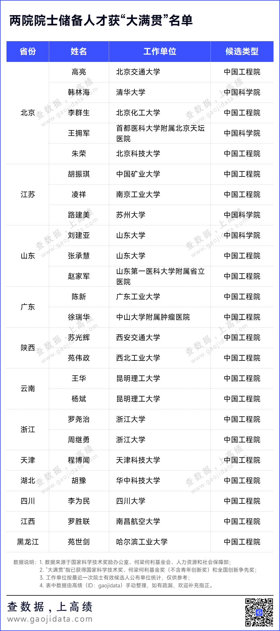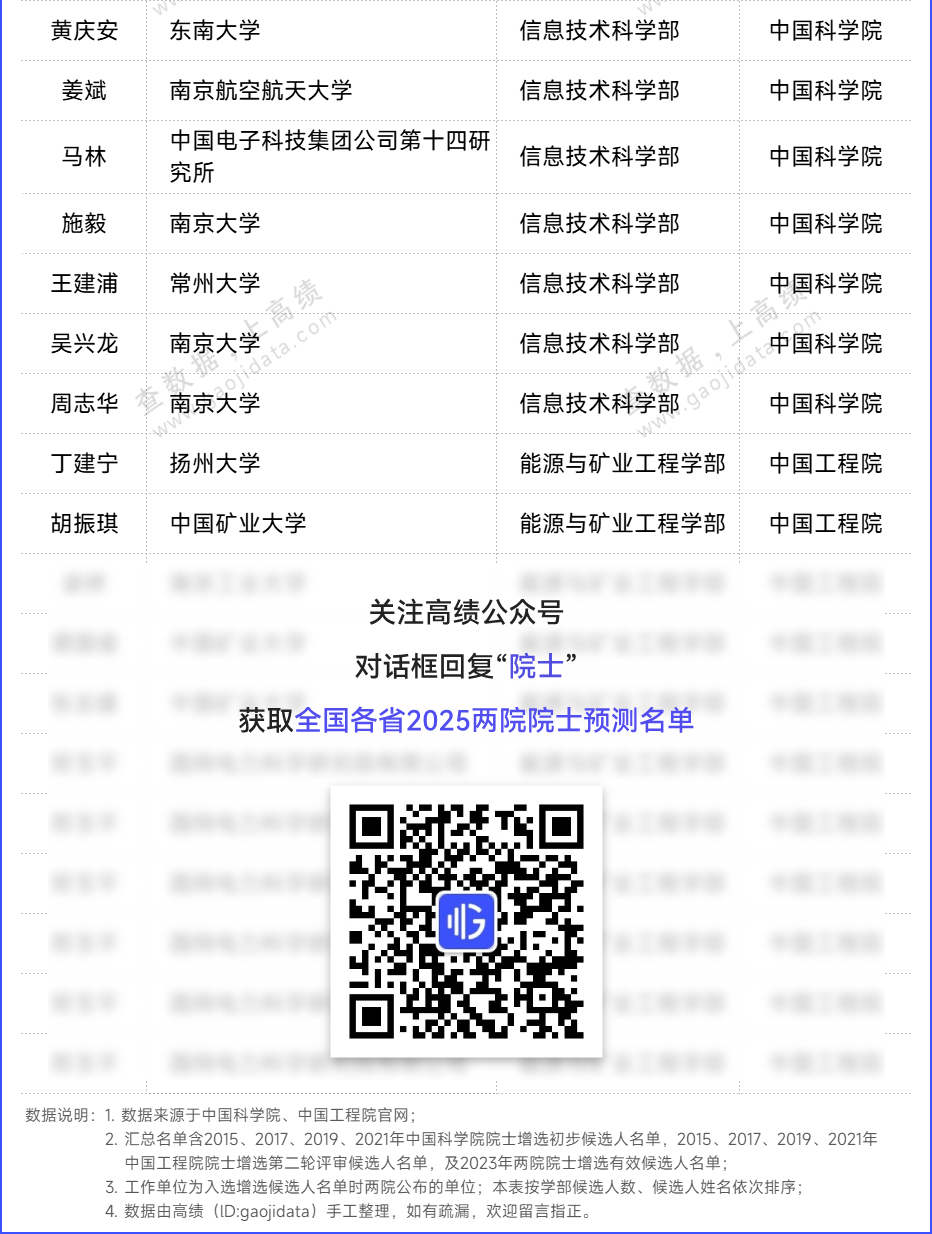 回复下载 关注“高绩”公众号,对话框回复“院士”,获取全国各省2025两院院士预测名单。