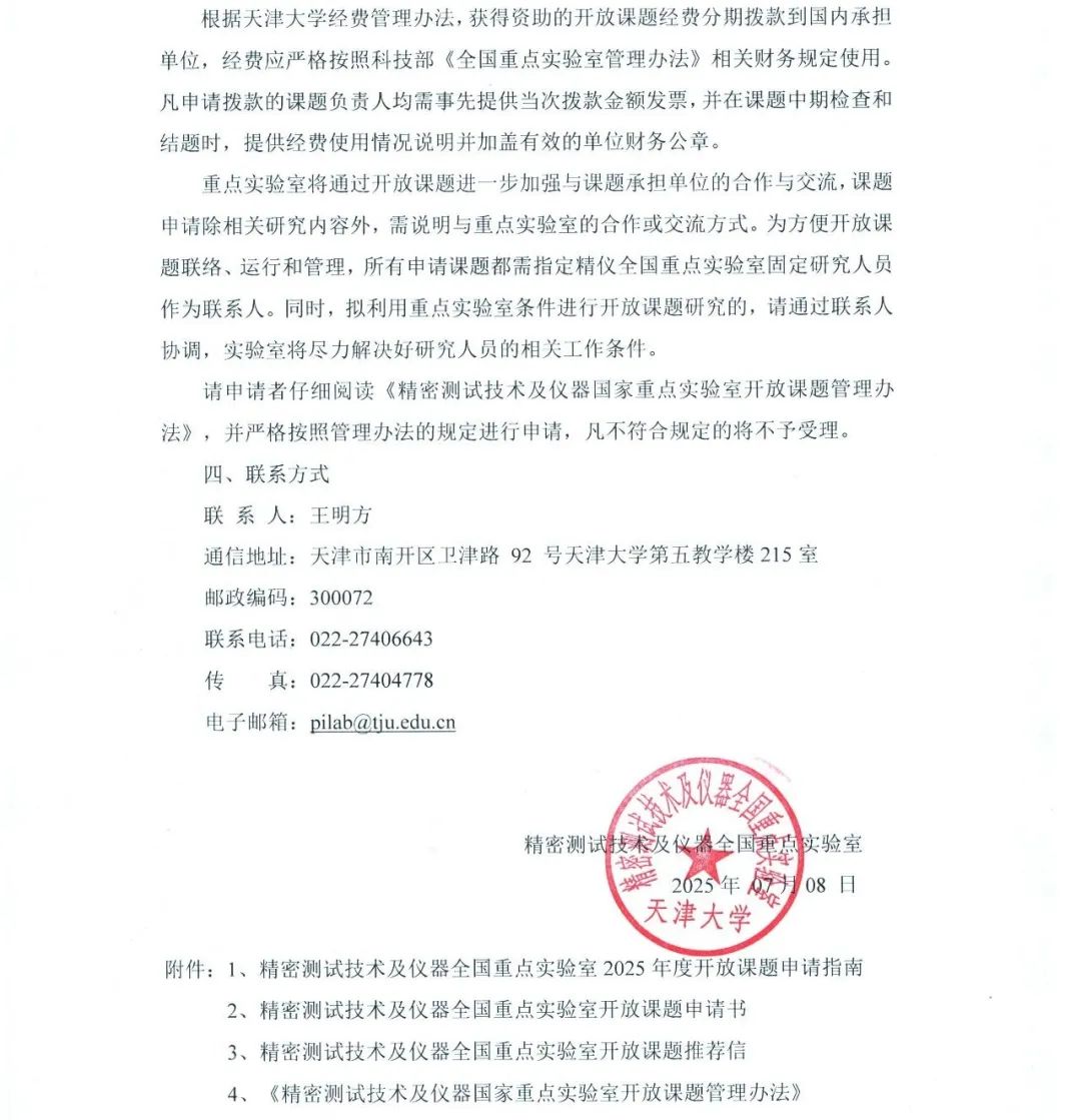 来信投稿:海上风力发电装备与风能高效利用全国重点实验室2025年开放课题申报指南 截止日期:7月20日 一、海上风力发电装备与风能高效利用全国重点实验室简介 海上风力发电装备与风能高效利用全国重点实验室为当前我国风电领域唯一获准建设的全国重点实验室,实验室依托湖南兴蓝风电有限公司、湘潭电机股份有限公司和湖南大学,在能源技术革命和实现“双碳”目标的重要历史机遇期,围绕风力发电“海洋化、规模化、数智化”带来的技术变革,致力于打破国外对我国风电装备领域理论、设计、制造、试验、运行等“卡脖子”禁锢,破解高端风电技术装备对外依存度高的瓶颈,打造我国高端海上大功率风电装备与风能高效利用技术策源地和高水平人才聚集地。 为充分发挥全国重点实验室科研平台的作用,促进科研合作和学术交流,实验室按照“开放、联合、流动、竞争”的运行机制,根据《海上风力发电装备与风能高效利用全国重点实验室开放课题管理办法》设立开放课题,以促进相关学科的相互交叉和集成。热忱欢迎和邀请相关领域的国内外科研人员与实验室人员进行合作研究,共同推动我国海上风力发电装备与风能高效利用领域的科学与技术的发展。现发布2025年开放研究课题申请指南如下: 二、申请人资格 开放课题面向国内外相关研究领域的高等院校、科研机构和企业等非本全重实验室依托单位研究人员。申请人原则上应具有博士学位或高级及以上技术职称,特殊情况须由实验室主任审定。 三、开放课题重点资助研究方向 1.大功率海上风电机组基础理论与关键技术研究 (1)大功率海上风电机组全过程能量传递协同作用理论; (2)大型海上风电机组系统集成及高可靠设计制造技术; (3)大型海上风电机组关键材料及核心部件技术; (4)大型风电机组关键参数的新型测量技术; (5)大型风电机组仿真设计与试验验证技术。 2.智能化风电场集群关键技术研究 (1)大规模风电场集群多域协同的梯次演进理论与设计方法; (2)风电机群虚拟现实与数字孪生技术; (3)风电机群全寿命周期健康预测与智能管理技术; (4)风电机群服役效能评估与调控关键技术。 3.风能高效利用关键技术研究 (1)新型风能高效能量转换理论与装备; (2)基于海上风力发电的多能源高效融合技术; (3)面向新型电力系统的风电机组友好并/组网关键技术; (4)复杂/灾害环境下风电机组适应性技术。 四、申请要求和程序 1.项目执行期和资助金额 2025年设立开放课题15项,执行期原则上不超过2年,资助金额不高于20万元/项。 2.申请程序 (1)开放课题实行申请人和本室合作人共同负责制。为了保障开放课题顺利执行,每项开放课题至少有一名实验室固定研究人员作为课题合作人; (2)申请人根据申请指南中的研究内容,自行选择课题,在申请截止时间(2025年7月20日)之前填写并提交《2025年度海上风力发电装备与风能高效利用全国重点实验室开放课题申请书》(附件1)及电子版; (3)申请书先由全重实验室综合管理部进行初审,符合申请要求的课题由全重实验室组织专家进行会议评审。根据评审结果,经由全重实验室主任批准课题资助决定,全重实验室综合管理部及时向申请人及其所在单位发布立项通知。 四、项目管理和验收要求 (1)课题负责人及主要研究人员应按照开放课题任务书组织开展研究,每半年向全重实验室提交项目工作简报,并及时提交相关成果。如发现原研究计划执行不力或不能实现时,全重实验室有权调整、暂停或撤销资助; (2)开放课题所产生的研究成果由全重实验室与课题负责人所在单位共享; (3)与开放课题相关的论文、专著、专利、软件、图纸等成果,均应注明“海上风力发电装备与风能高效利用全国重点实验室开放课题项目”和课题编号,未按要求标注的成果,检查、验收均时不予承认。课题组成员发表论文、专利与软件著作权等应按照开放课题协议要求对作者单位进行标注; (4)在项目结题后,可择优遴选一部分绩效评价为“优秀”的项目,给予滚动支持。 五、联系方式 附件下载及实验室网址链接:https://yldlcdyxxfdjs.hnu.edu.cn/lxwm/kfkt.htm 联系人:吕铭晟、肖华林、张大功 邮编:411102 电话:0731-88822461 电子邮箱:HFSKL@qq.com;xiaohualin@hewp.com.cn;zdg@xemc.com.cn; 半导体显示材料与芯片重点实验室开放课题申请指南(2025) 截止日期:无 依托中国科学院苏州纳米技术与纳米仿生研究所组建的半导体显示材料与芯片重点实验室2024年获批成立,聚焦半导体显示材料缺陷密度高、芯片能效低等基础科学问题,开展关键材料、核心器件与集成芯片的创新研究,突破高质量材料生长与高性能芯片制备的关键技术,集聚一批由战略科学家、青年学术带头人等组成的科技创新队伍,目标产出一批原创性科技成果,推动科技成果的转移转化,着力建设成半导体显示材料与芯片领域创新高地。 重点实验室秉持“开放、联合、流动、竞争”的运行机制,鼓励相关学科的相互结合与促进,设立开放课题,热忱欢迎和邀请半导体显示材料与芯片领域的国内外优秀科研人员、科研团队与实验室开展合作研究。 一、资助领域 1、高质量半导体光电材料 GaN基和GaAs基III-V族化合物半导体材料外延生长与测试表征 2、高能效红绿蓝微纳光电器件 GaN基和GaAs基化合物半导体微纳光电器件(红绿蓝高效Micro-LED、半导体边发射与面发