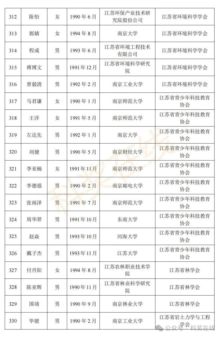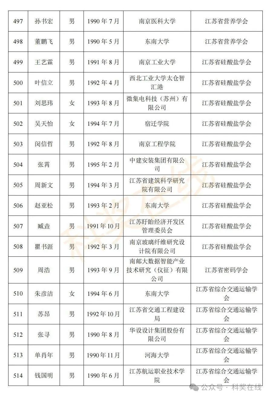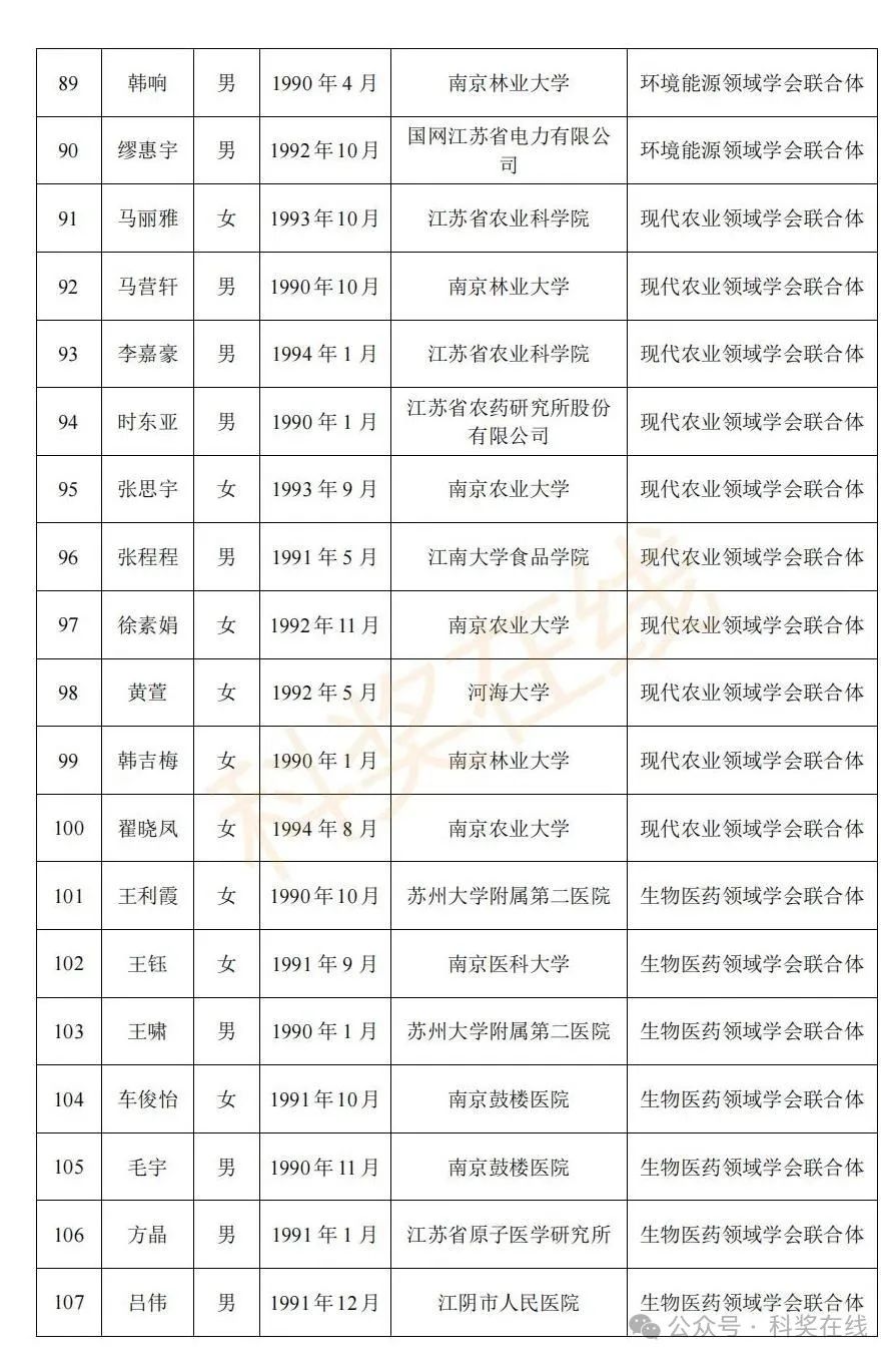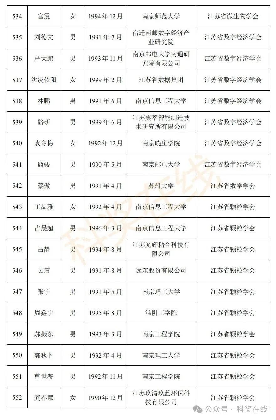 关于2025年江苏省青年科技人才托举工程拟资助对象的公示根据《关于开展2025年江苏省青年科技人才托举工程资助对象评选推荐工作的通知》,经各省级学会、省部属企事业单位、高校和设区市科协广泛发动,多渠道申报,专家评审,拟确定王再禹等1004名同志为2025年江苏省青年科技人才托举工程资助对象,现面向社会公示。