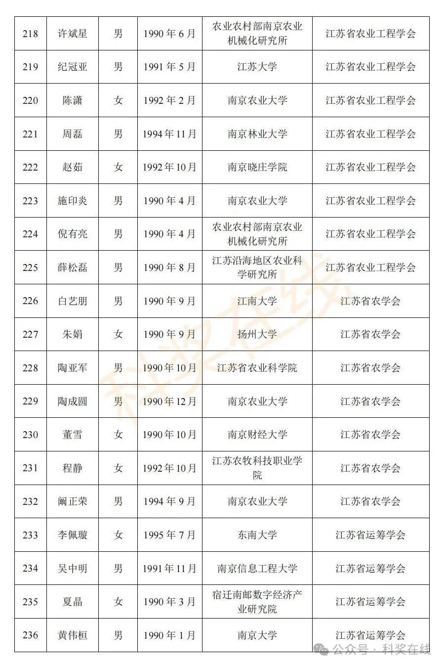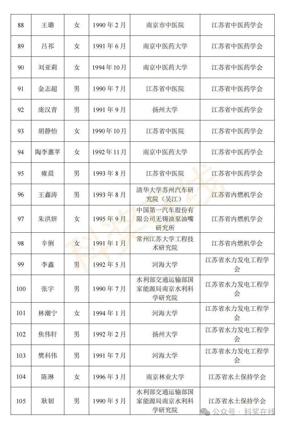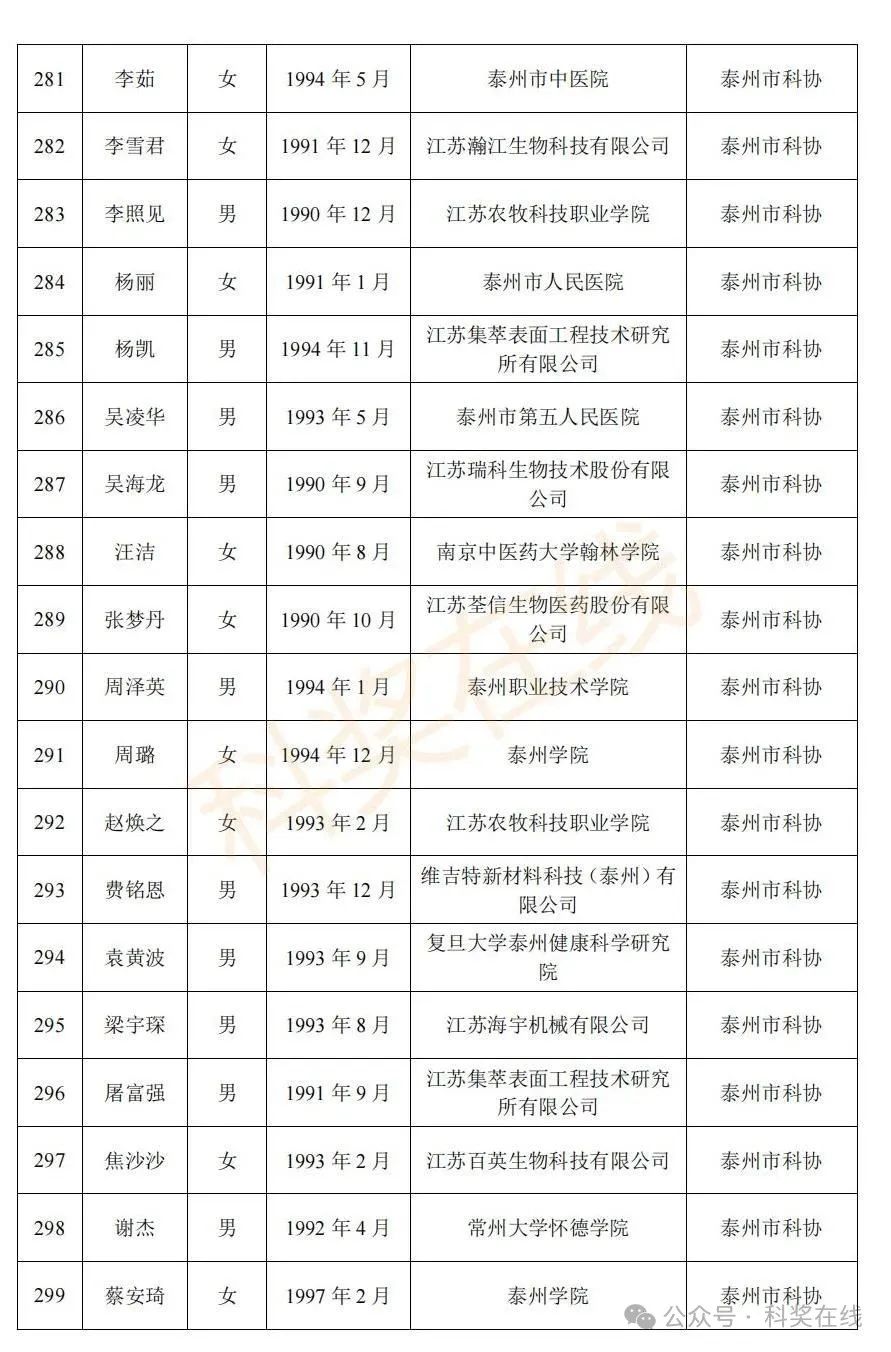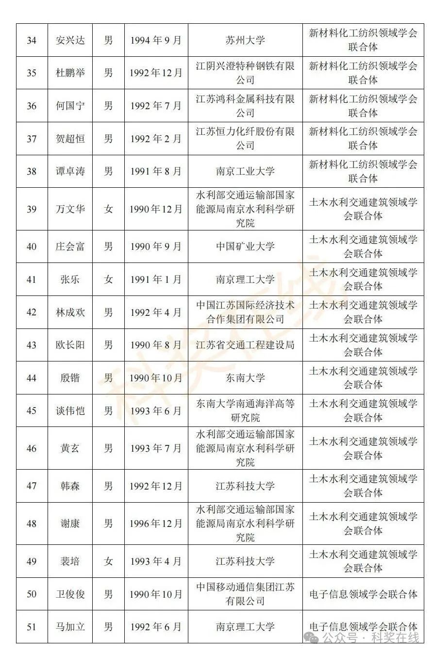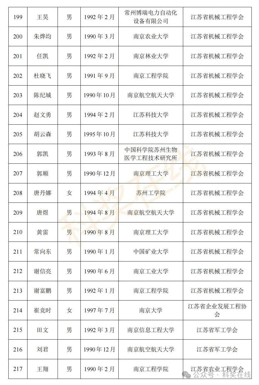 关于2025年江苏省青年科技人才托举工程拟资助对象的公示根据《关于开展2025年江苏省青年科技人才托举工程资助对象评选推荐工作的通知》,经各省级学会、省部属企事业单位、高校和设区市科协广泛发动,多渠道申报,专家评审,拟确定王再禹等1004名同志为2025年江苏省青年科技人才托举工程资助对象,现面向社会公示。