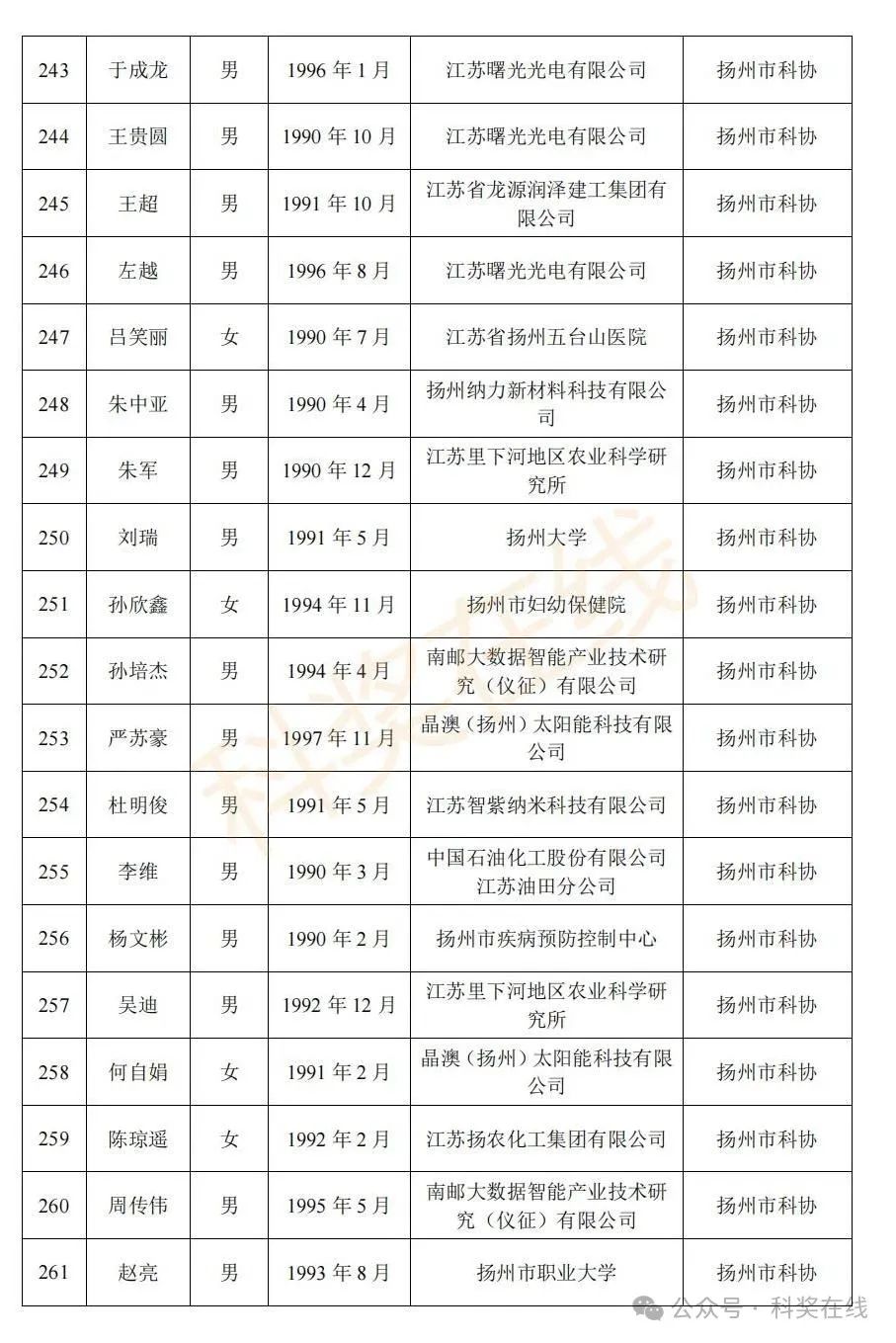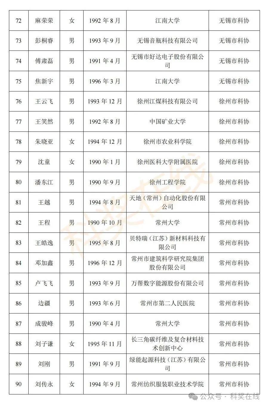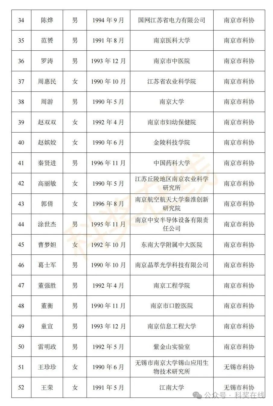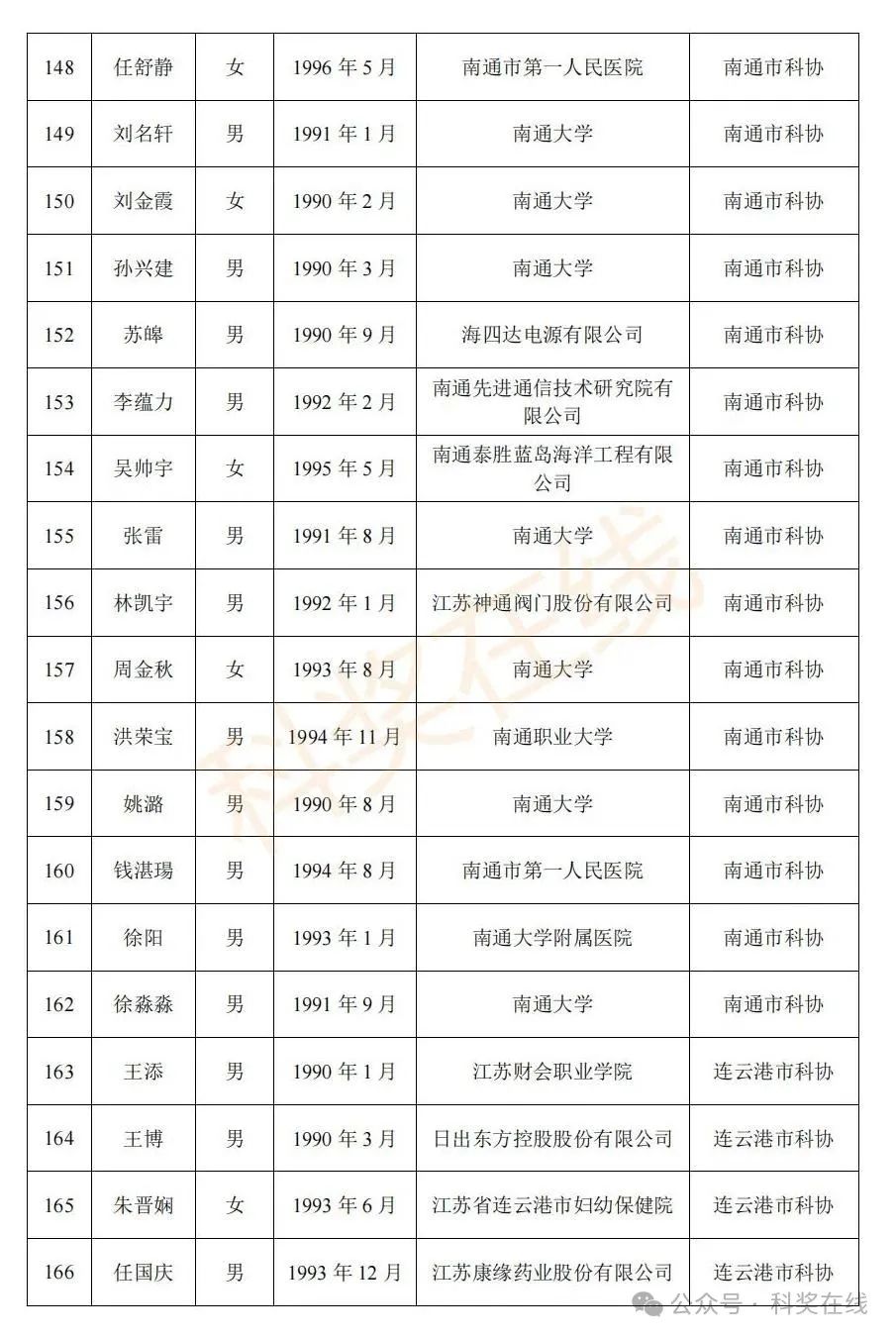 关于2025年江苏省青年科技人才托举工程拟资助对象的公示根据《关于开展2025年江苏省青年科技人才托举工程资助对象评选推荐工作的通知》,经各省级学会、省部属企事业单位、高校和设区市科协广泛发动,多渠道申报,专家评审,拟确定王再禹等1004名同志为2025年江苏省青年科技人才托举工程资助对象,现面向社会公示。