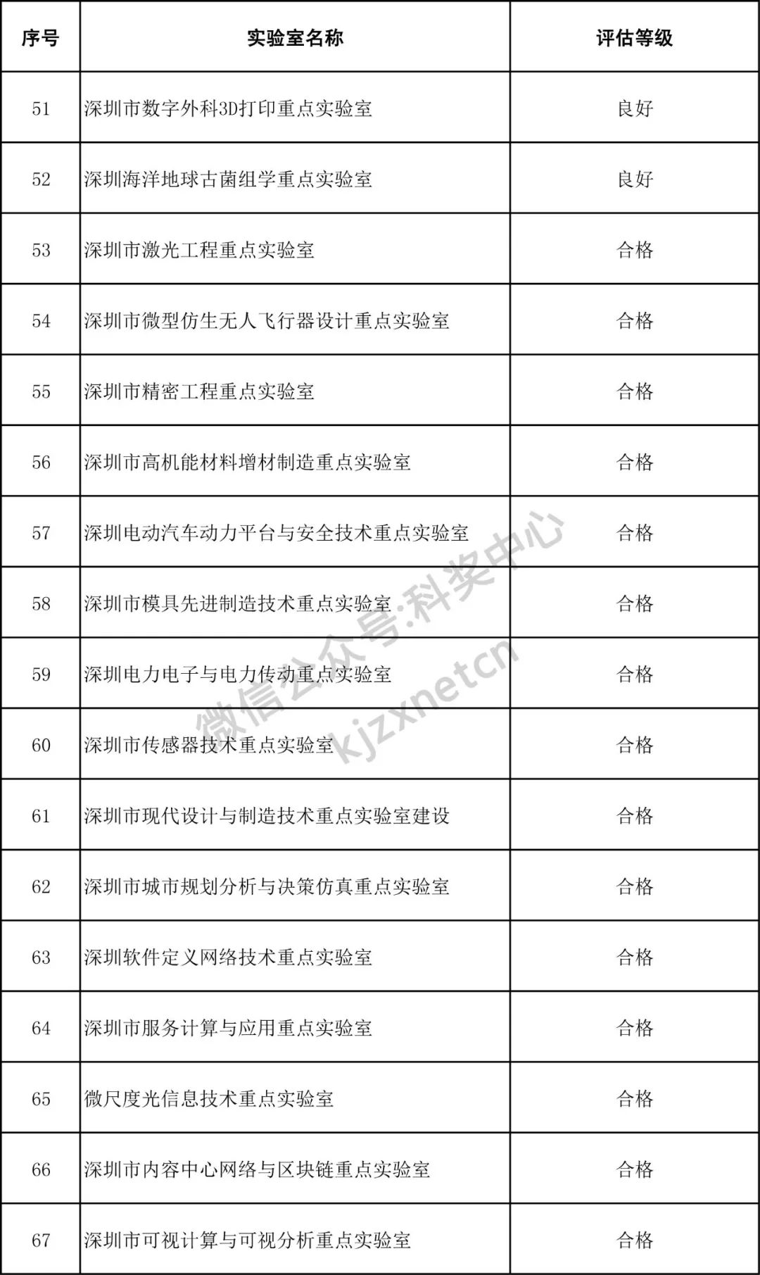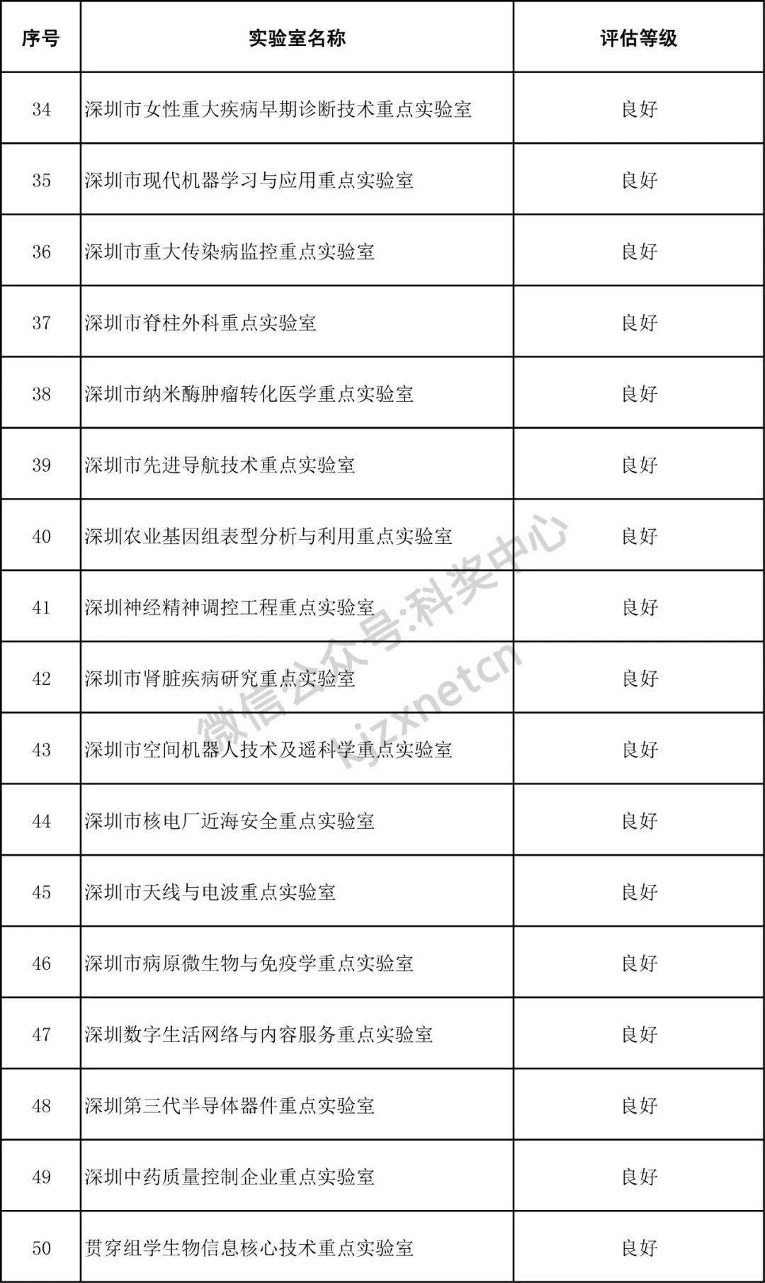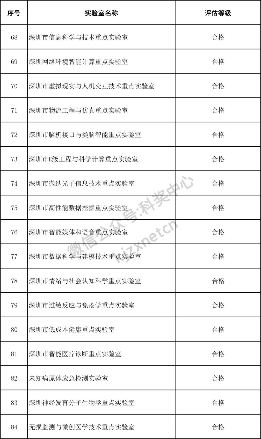 深圳市重点实验室评估结果公示
