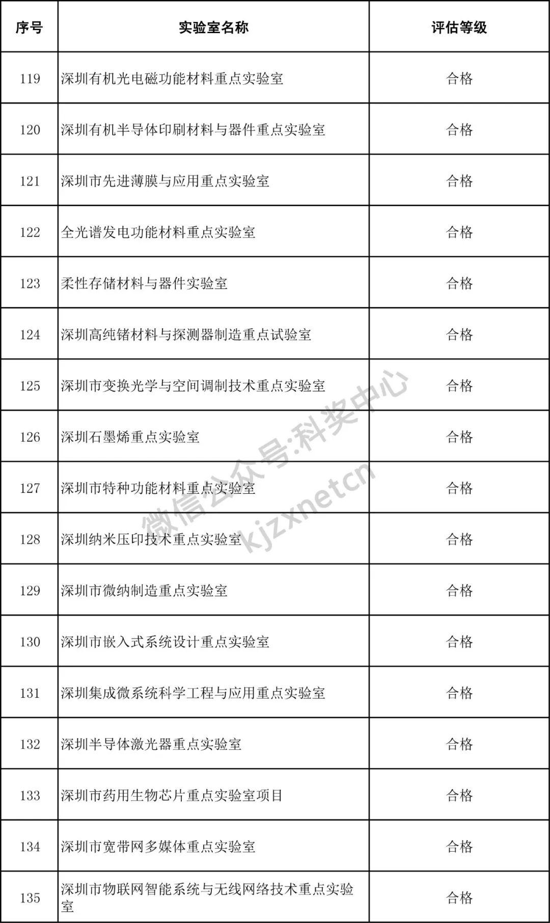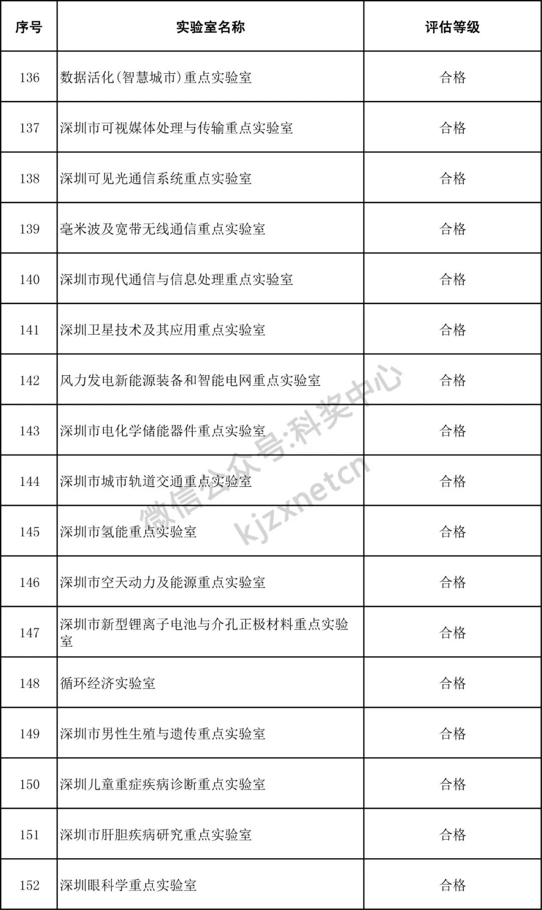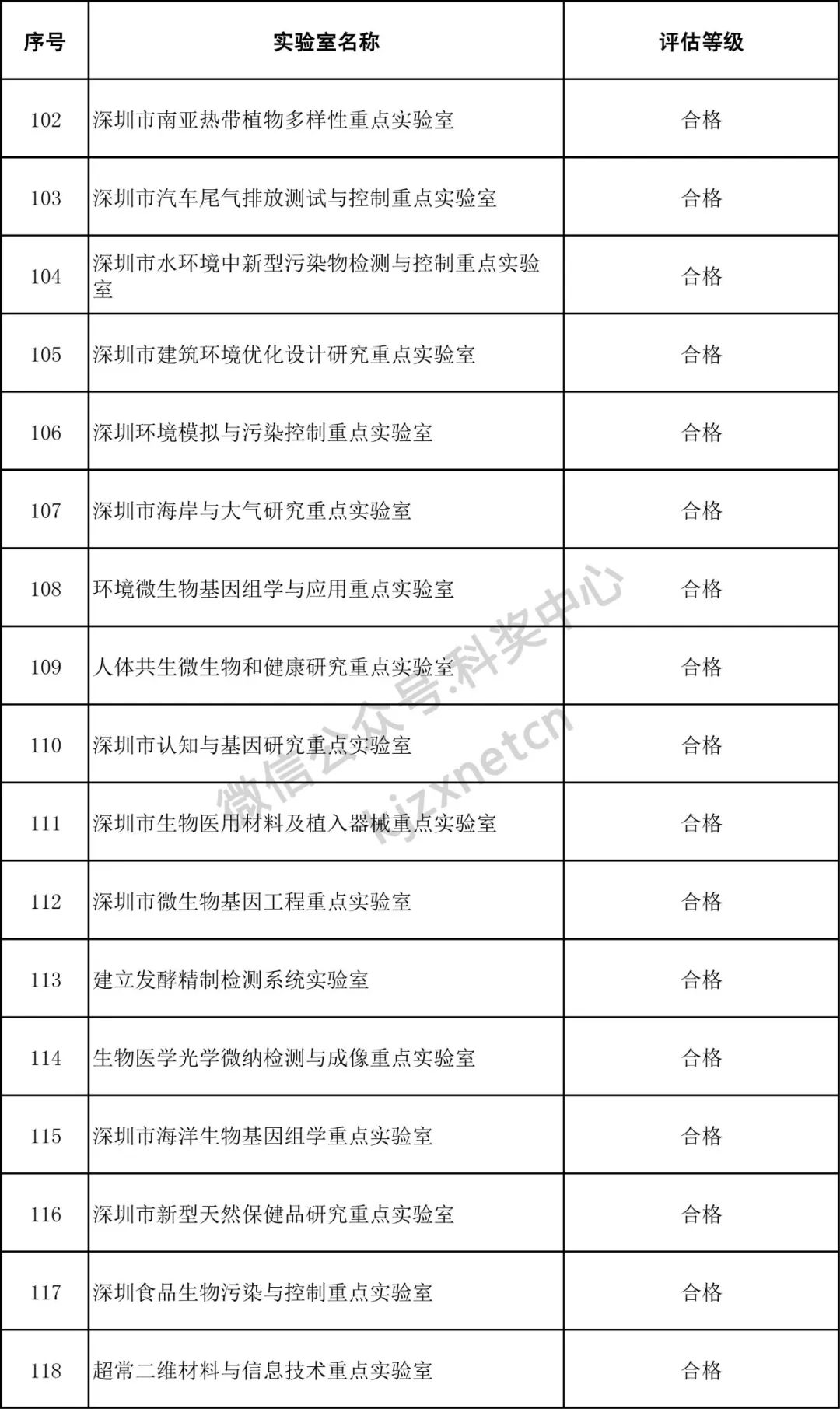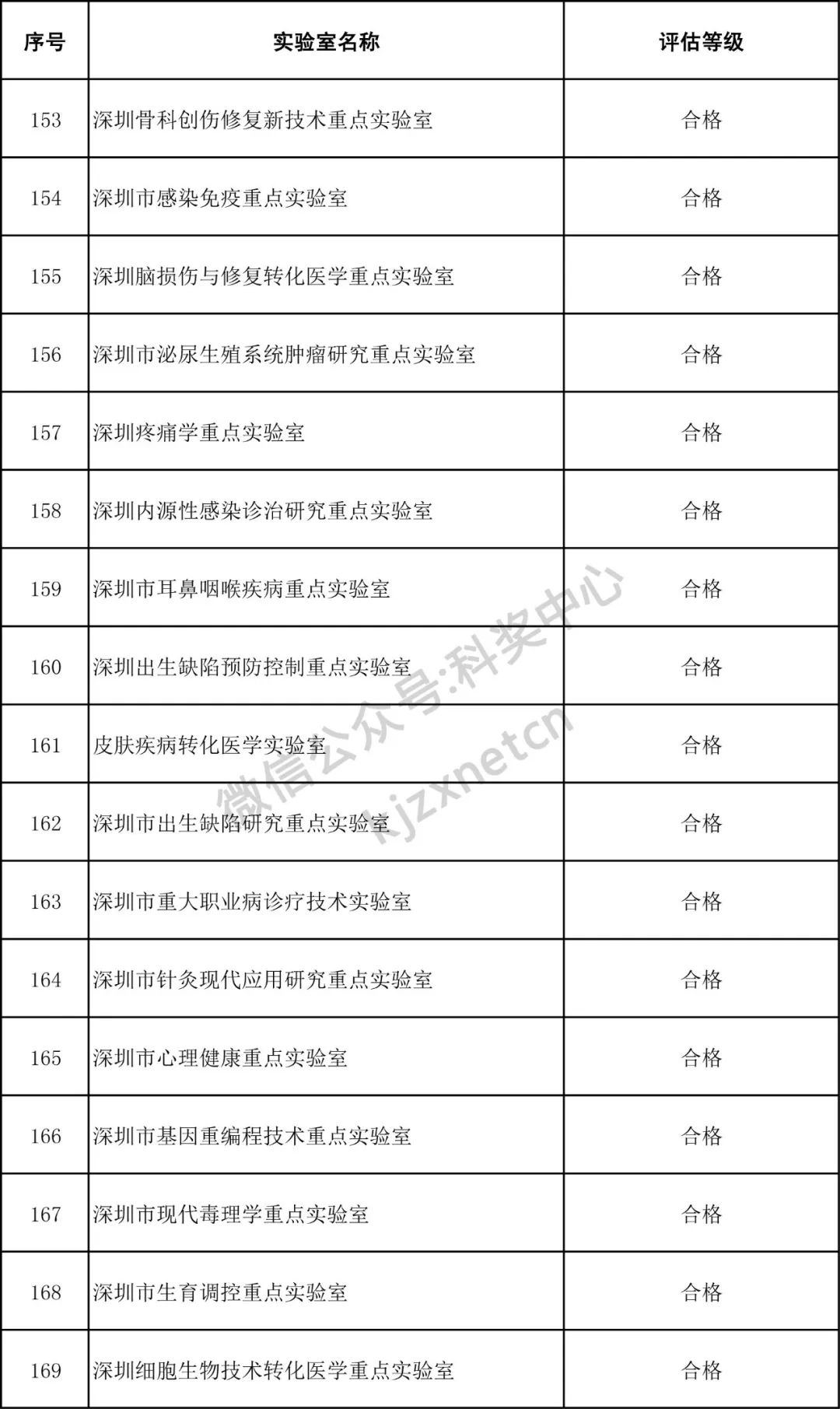 深圳市重点实验室评估结果公示