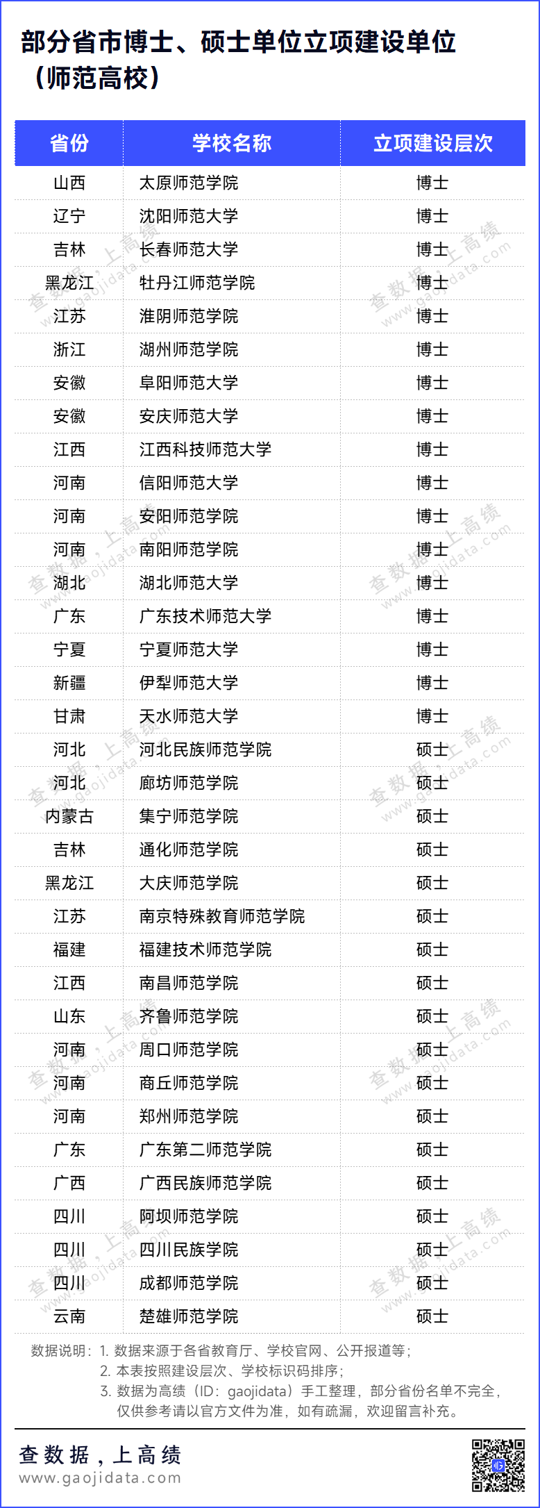 回复下载 关注“高绩”公众号,对话框回复“申博”,获取各省博士、硕士学位授予立项建设单位名单。 硕博教师,人才紧缺