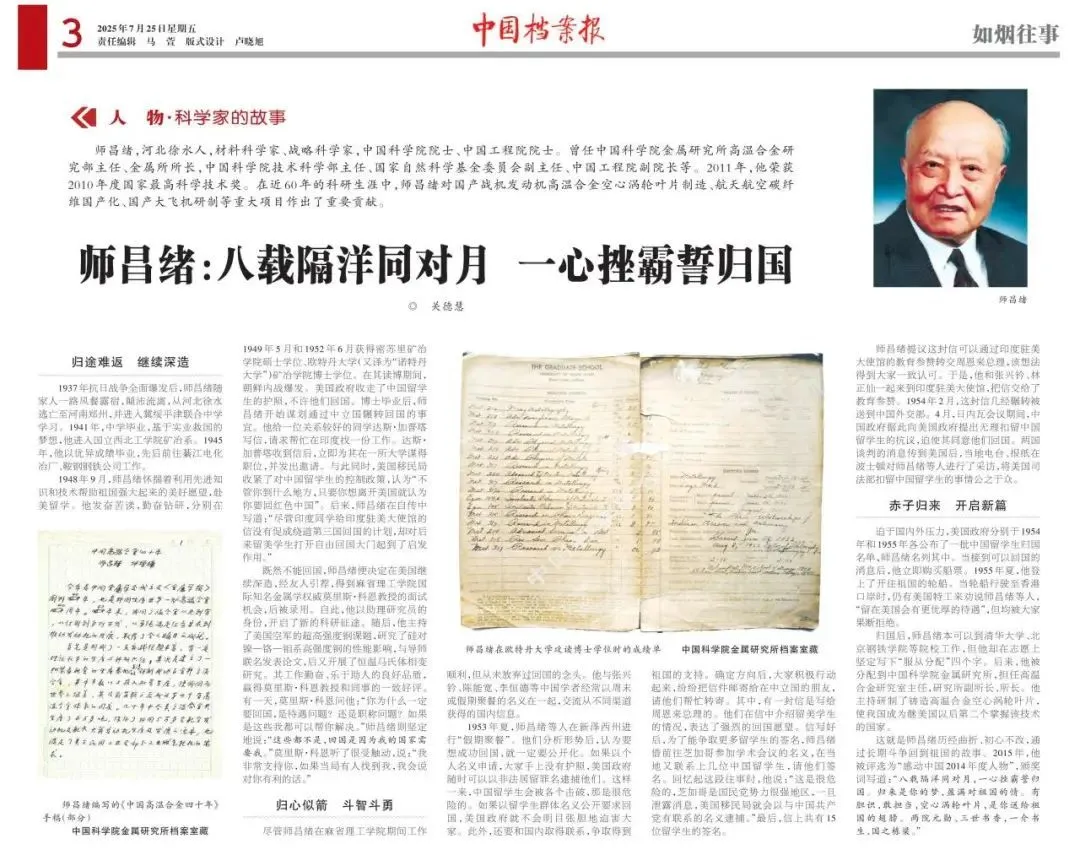(作者关德慧,单位系中国科学院金属研究所,本文原载于《中国档案报》2025年7月25日总第4319期第三版)
