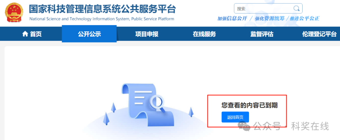 编者于8月10日登录该网址,发现【您查看的内容已到期】,标志着2025年国家科技奖公示结束,实际公示时间15天,与2023年度国家科技奖公示时间一致。
