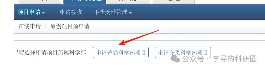 点击 “申请普通科学部项目”。