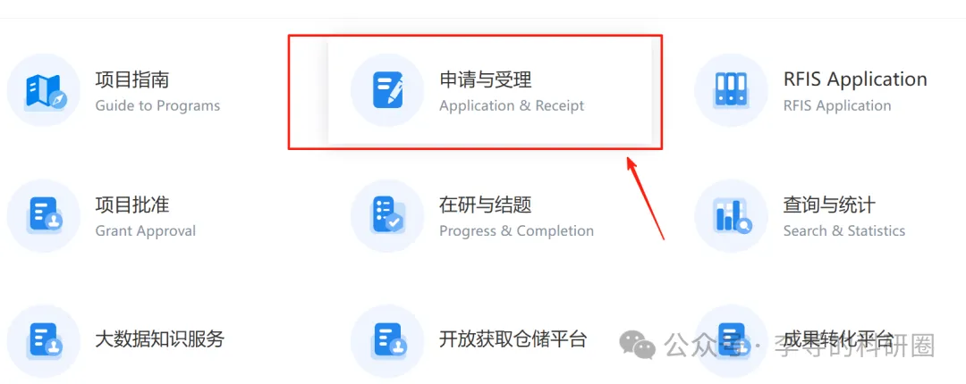 首先,登入国自然科学基金申请系统:进入 “申请与受理” 页面。