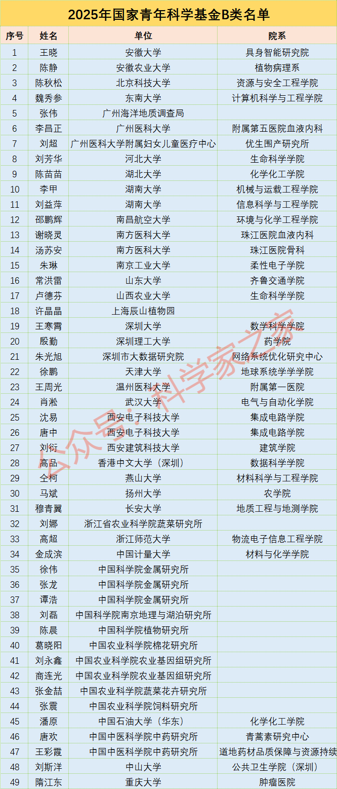 国家自然科学青年科学基金项目(B类)(原国家优秀青年科学基金项目)支持在基础研究方面已取得较好成绩的青年学者自主选择研究方向开展创新研究,促进青年科学技术人才的快速成长,培养一批有望进入世界科技前沿的优秀学术骨干。