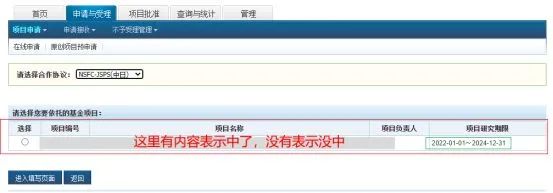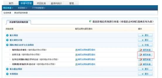 第二步:在窗口弹出“重要提示”之后,点击“已阅读” 第三步:在新的界面中点击“申请普通科学部项目” 第四步:在“展开国际(地区)合作与交流项目”一栏中,选择第二个——“合作交流”,并且点击“合作交流”同一行中的“填写申请” 第五步:在新的界面中任意选择一个合作协议,随后系统会显示“请选要依托的基金项目”。如果申请人没有获得资助,那么在下图被红色框起来的那一部分,也就是“基金项目”这一栏中,不会有任何内容。 该方法操作建议仅作参考,最终结果仍须以国自然基金委发送的官方通知邮件为准。最后祝愿各位科研人一基即中!