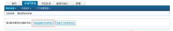 第一步:请各位申请人登录国家自然科学基金申请系统,打开“申请与受理”的页面,随后点击“新增项目申请”。