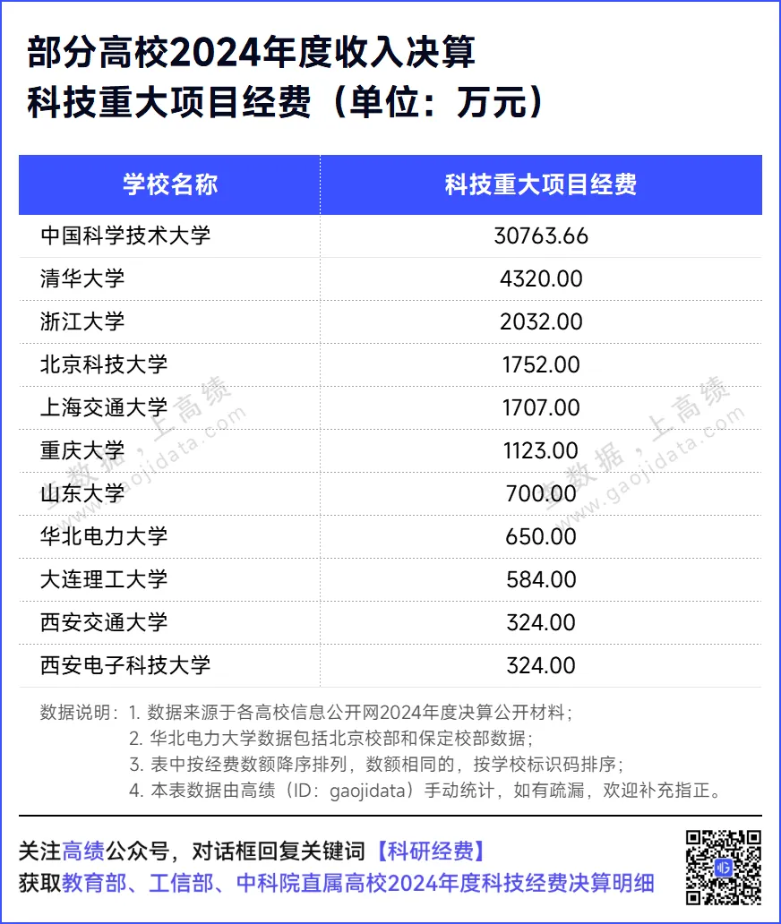 科学研究、人才培养、社会服务是当代高校的重要使命。本文,高绩(ID:gaojidata)梳理了三部门直属高校2024年度收入决算中的科学技术经费,一睹这些大学在过去一年在科学技术研究方面获得的经费支持情况。
