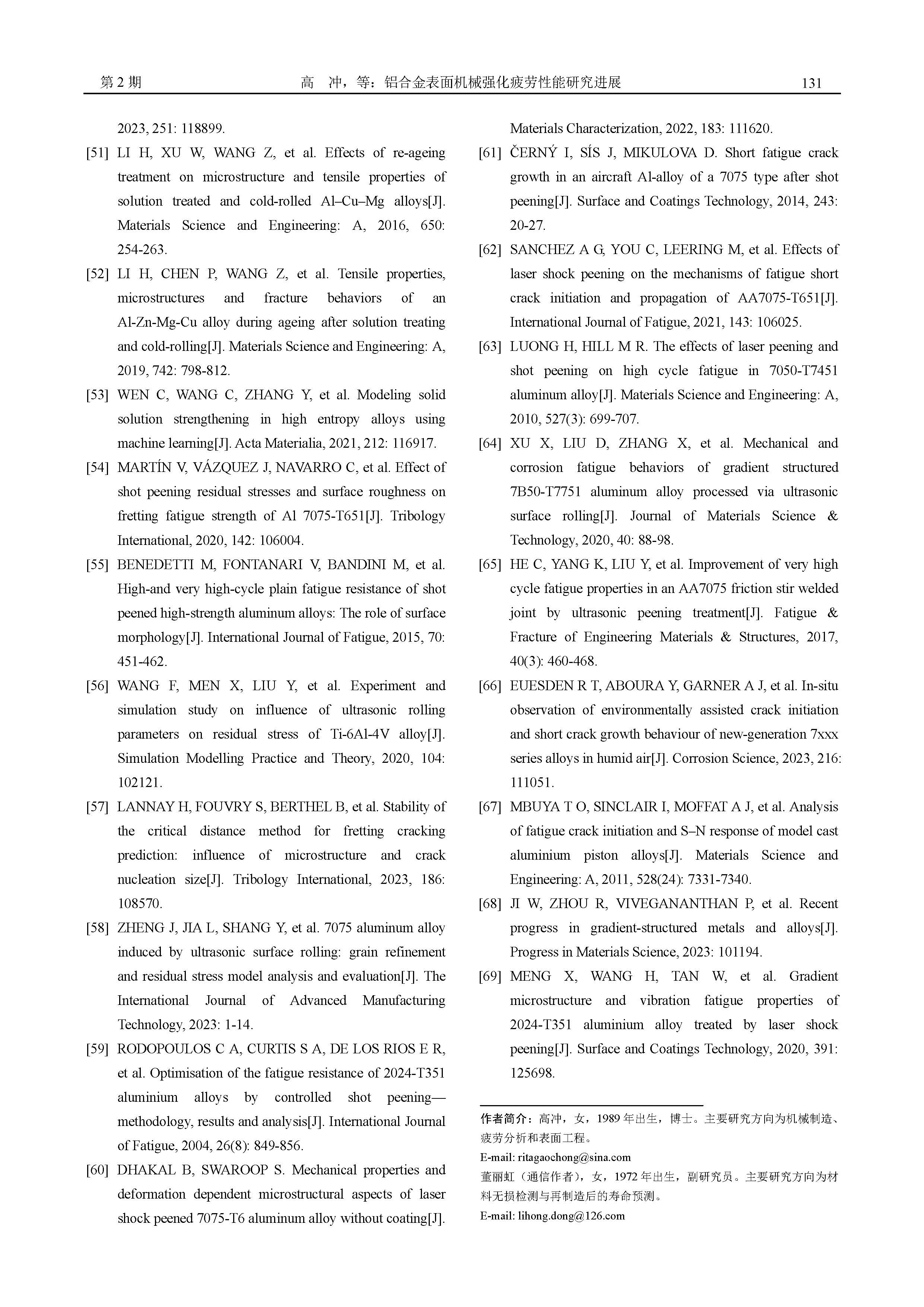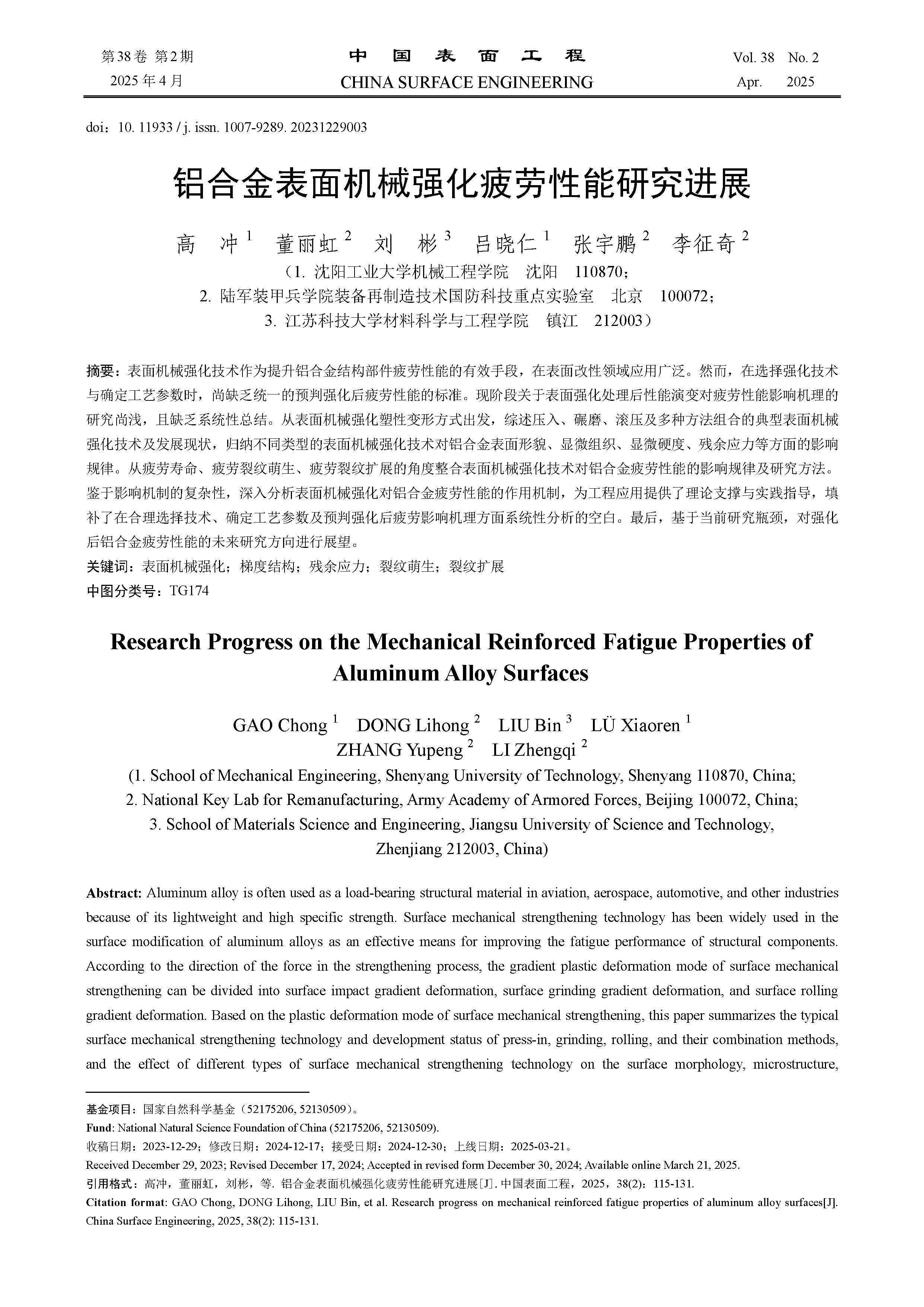 铝合金表面机械强化疲劳性能研究进展