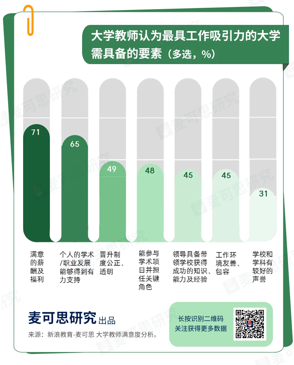 怀进鹏部长的表态直击关键,而要真正实现这一目标,建立合理的薪酬体系是核心环节之一。正如研究指出: “有竞争力的工资水平有利于体现高校教师的劳动价值,提高高校教师职业的吸引力;而科学合理的工资结构则能够保障教师个体的基本生活需要,激发教师工作的内在动机,提高教师在教学、科研与社会服务方面的工作绩效”。胡咏梅等人在《理想与现实:我国高校教师工资水平与结构分析》一文中写道。 在大众眼中,大学教师是个体面的职业,认为该群体的收入应该不低。然而实际情况可能与普遍认知存在一定差距。 麦可思2022年曾开展过一项教师满意度的研究。受访教师被问及最具工作吸引力的高校应具备哪些要素,满意的薪酬及福利是大学教师认为最重要因素,选择此项的教师比例为71%。 当受访教师被明确问及对自己当前的收入是否满意时,超三成(32%)表示不满意。 具体来看,受访教师中,年收入在10万元以内的比例为54%,10万~14万的比例为24%,14万~18万的比例为11%,18万以上的比例为11%。其中,青年教师薪资在10万元以下比例较高,为66%;46岁及以上教师在18万以上占比较高,为31%。 不过需说明的是,大学教师的收入,受到地域、院校层次、教师职称、院系和专业等多重因素影响,存在不小的差异,甚至可能是巨大的差异。 北京工业大学人文社会科学学院和社科文献出版社联合发布的《高校教师收入分配与激励机制改革研究》一书提到,即使是同一职称级别的高校教师,如果比较收入最高的10%群体和收入最低的10%群体,高校教授之间的收入差距达5.9倍,副教授为4.5倍,讲师之间的收入差距更是达到了25倍。 面对教师薪资与社会期待的落差,各地政府和高校正通过政策创新积极回应诉求,积极探索薪酬改革的可行路径。 据浙江省政府网站去年3月底的消息,针对网友“浙江省高校教师薪资水平与浙江省在全国经济社会发展的总体水平不匹配”的留言,浙江省教育厅答复称,将在适当调节高校工资收入的基础上,给予高校更大的收入分配自主权,进一步提高教职工的职业幸福感,激发高等教育办学活力,促进高等教育事业的发展。 北京市人力资源社会保障局印发《贯彻落实党的二十届三中全会和市委十三届五次全会精神改革任务清单》明确,要开展高校科研院所薪酬制度改革试点、完善最低工资标准和工资指导线调整及发布机制等改革举措,最大限度促进劳动者工资收入合理增长。 四川省日前发布的《教育强省建设规划纲要(2025—2035年)》中明确,提高教师待遇和地位……推进高校薪酬制度改革。 …… 近年来越来越多的高校已在进行教师薪酬改革,一批高校教师薪资获得提升。 安徽一师范学院今年初对外发布的消息称,该校提高教师的薪资水平,落实绩效工资分配制度,2024年,在前一年的基础上合理提高绩效工资基本盘,提升教师的幸福感、获得感。 某医学院曾发文提到,根据学校新的薪酬绩效改革方案,2023年5月教职工薪酬实现了人均5000元/月(6万元/年)一次性调增,足额每月发放至教职工手中,本次调增后该校来校3年及以上在校教职工月平均薪酬达16880元。 东北某理工学院曾透露该校新一轮教职工薪酬福利调整方案于2022年实施,该校表示,新增投入1500万元用于教职工工资和福利调整,进一步完善薪酬体系,优化工资结构。 …… 高校薪酬改革是一项复杂且系统的工程。 《教育部等六部门关于加强新时代高校教师队伍建设改革的指导意见》中曾明确,在薪酬制度改革上,高校应落实以增加知识价值为导向的收入分配政策,探索建立符合高校特点的薪酬制度;探索建立高校薪酬水平调查比较制度,健全完善高校工资水平决定和正常增长机制,在保障基本工资水平正常调整的基础上,合理确定高校教师工资收入水平。高校要结合实际健全内部收入分配机制,完善绩效考核办法,向扎根教学一线、业绩突出的教师倾斜。 在政策推进与高校实践的基础上,不少研究也进一步聚焦于改革过程中面临的实际问题与优化路径。例如,对于高校教师薪酬改革,胡咏梅等人基于研究发现,提出3点对策建议: ✦ 关注高校教师尤其是“双一流”建设高校专任教师、东部地区高校教师的期望工资水平,适度提高高校教师的工资水平,建立适应各地经济发展水平的工资增长机制;加大对高校教师队伍建设的专项投入,助力高校建立人员经费支出的长效增长机制。 ✦ 优化高校教师工资结构,适当提高教师的基本工资占比;鼓励经济发达省份制定与当地经济发展水平相匹配的基本工资标准,以增强高校教师工资的保障性功能。 ✦ “双一流”建设高校一方面支持一流学科建设院系创新薪酬分配制度,为高层次人才设定具有国际竞争力的薪资水平;另一方面关注青年教师的生存发展状况,优化高校青年教师工作环境,为青年教师提供灵活多样的福利项目。 高校教师薪酬改革事关教育强国建设的根基,既需要政策层面的持续推动,也更离不开高校自身的创新探索。当前,从中央到地方,从制度设计到院校实践,多项改革正在稳步推进。唯有进一步优化收入分配结构、强化薪酬激励效应、关注青年教师成长,才能真正提升教师的职业获得感和尊严感,吸引并留住优秀人才投身教育事业,为高质量发展提供坚实人才支撑。