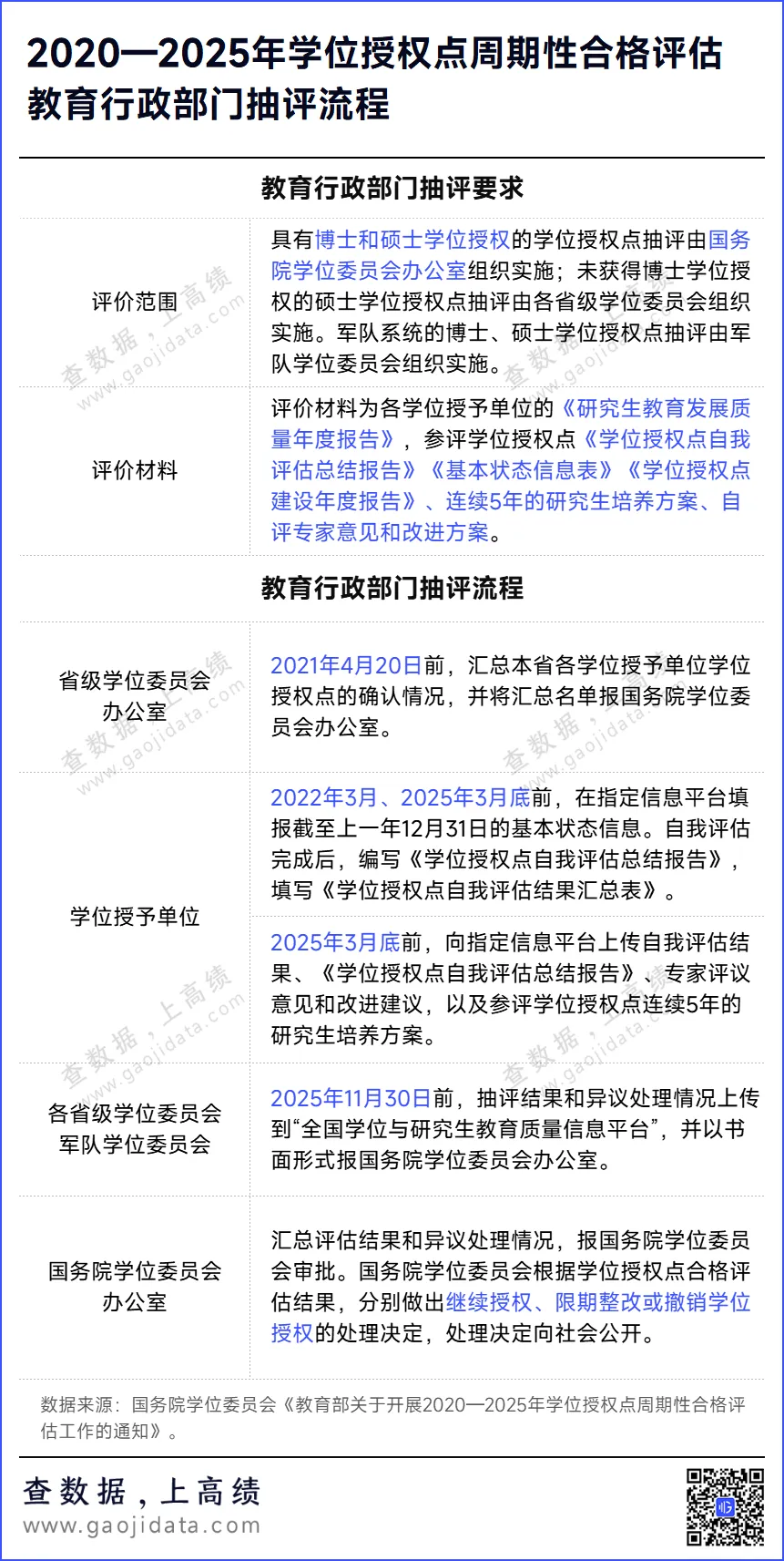 教育行政部门的抽评将做出继续授权、限期整改或撤销学位授权的处理决定,对于高校学位点的发展可谓“生死攸关”。其中,《学位授权点自我评估总结报告》《基本状态信息表》《学位授权点建设年度报告》、连续5年的研究生培养方案、自评专家意见和改进方案,是教育行政部门抽评的重要依据。