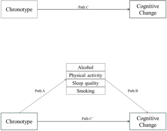 从中介分析来看,晚时型与睡眠质量差和当前吸烟相关,而这两者与认知下降有关。
