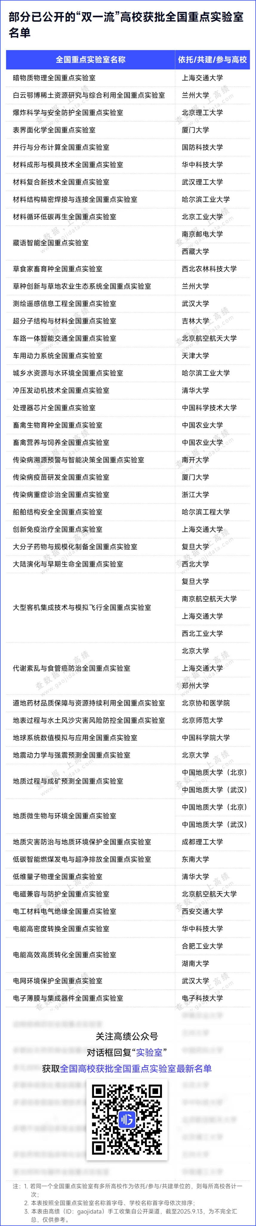 截至2025年9月13日,高绩(ID:gaojidata)据公开信息不完全统计,已有超500家全国重点实验室获批或重组完成。