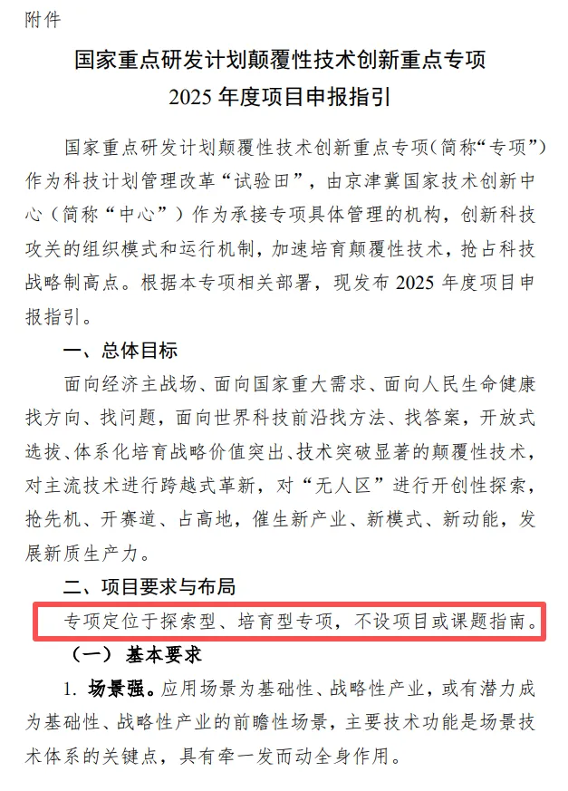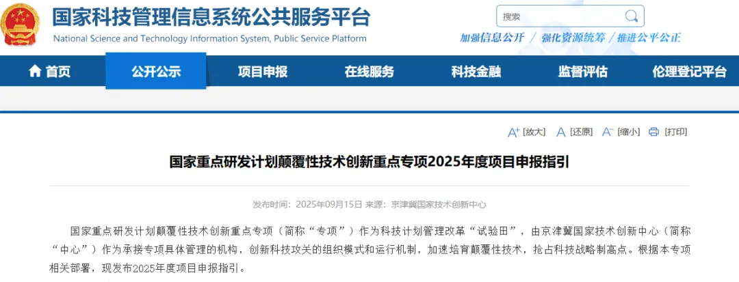 国家重点研发计划颠覆性技术创新重点专项2025年度项目申报指引