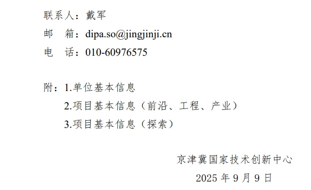 联合项目基本要求、申报资格、申报流程、支持方式等与《国家重点研发计划颠覆性技术创新重点专项2025年度项目申报指引》相关规定一致。项目单位通过中心网站公开征集窗口(https://project.dipa.cn)或项目征集专属邮箱(dipa@jingjinji.cn)提交单位基本信息、项目基本信息。