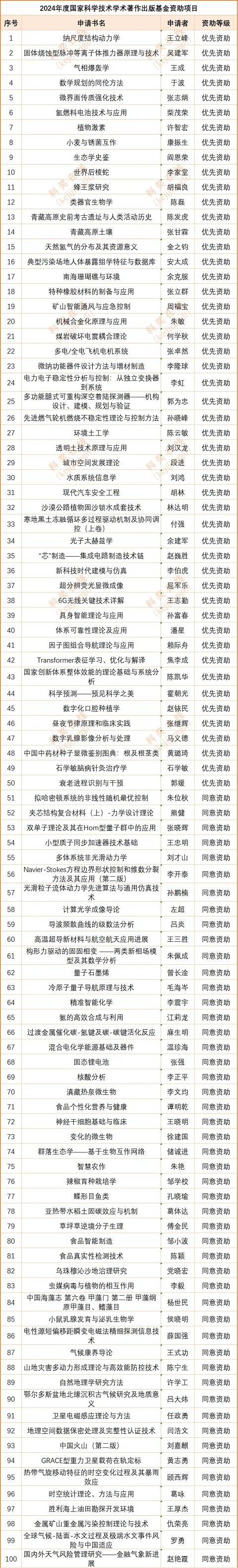 2024年度国家科学技术学术著作出版基金资助项目评审工作已经结束。经专家评审、国家科学技术学术著作出版基金委员会批准,确定了2024年度国家科学技术学术著作出版基金资助项目,现予以公示: