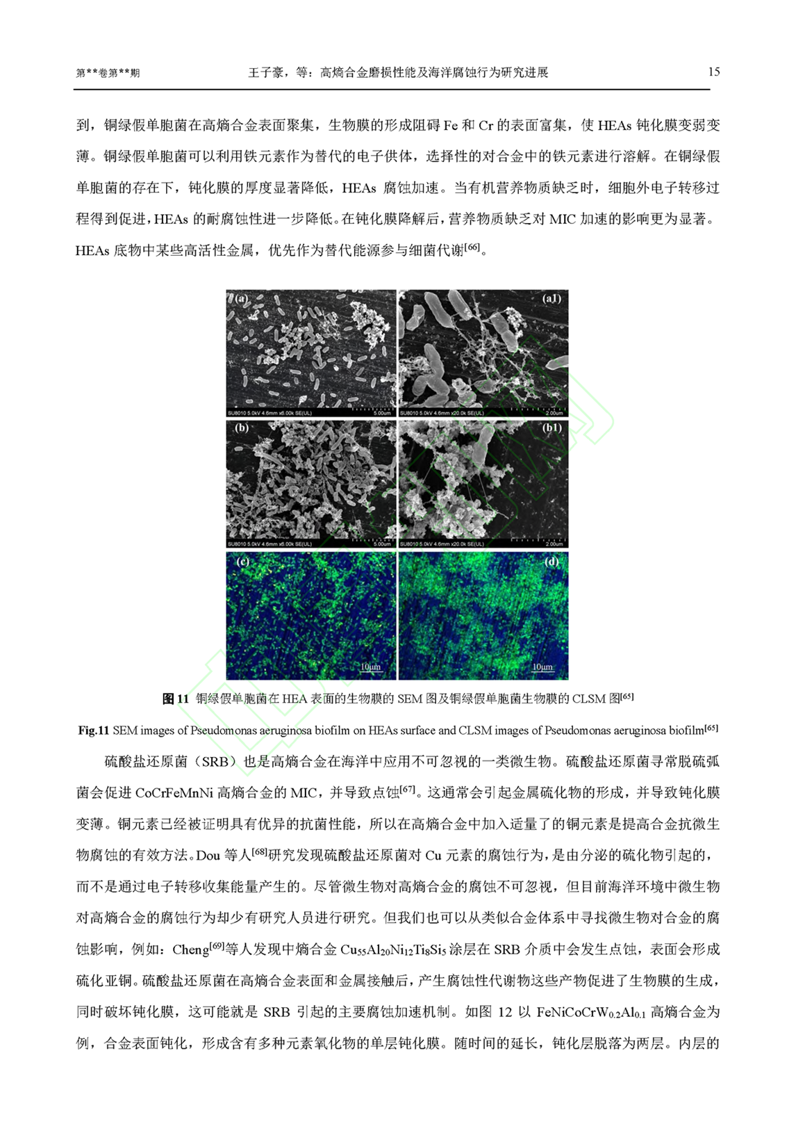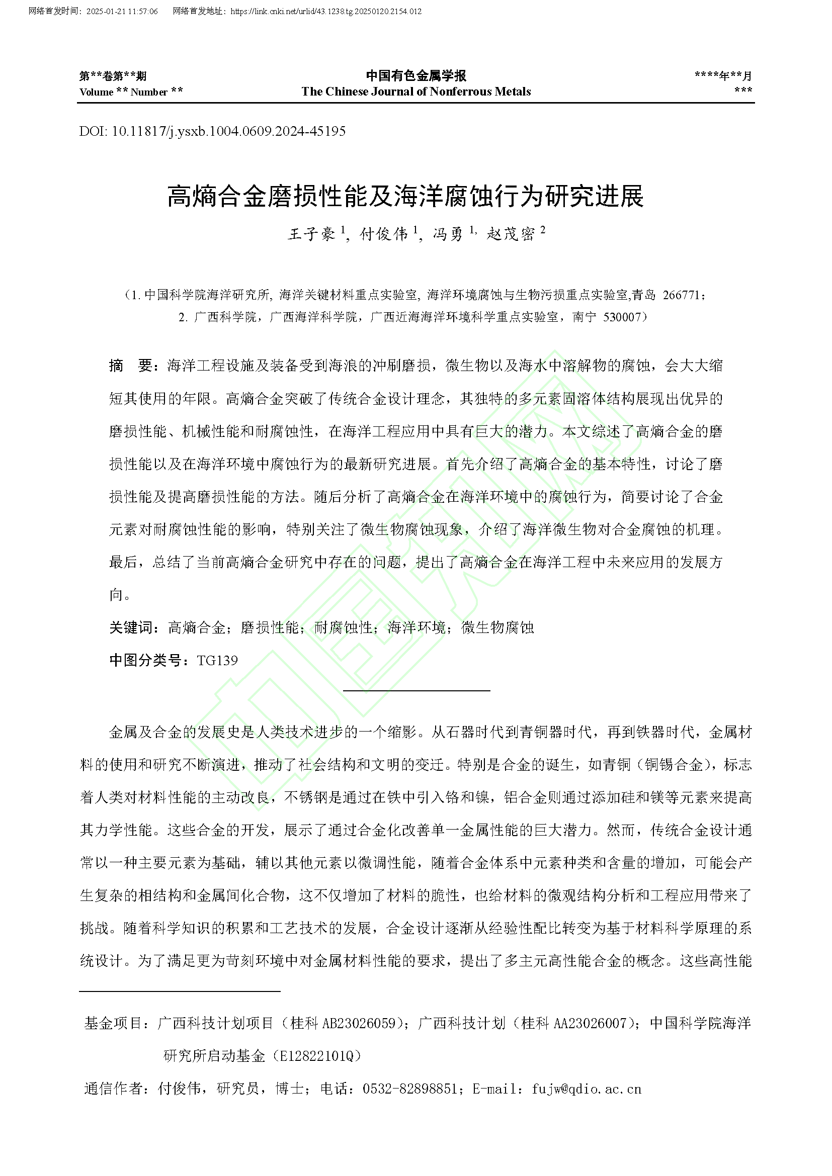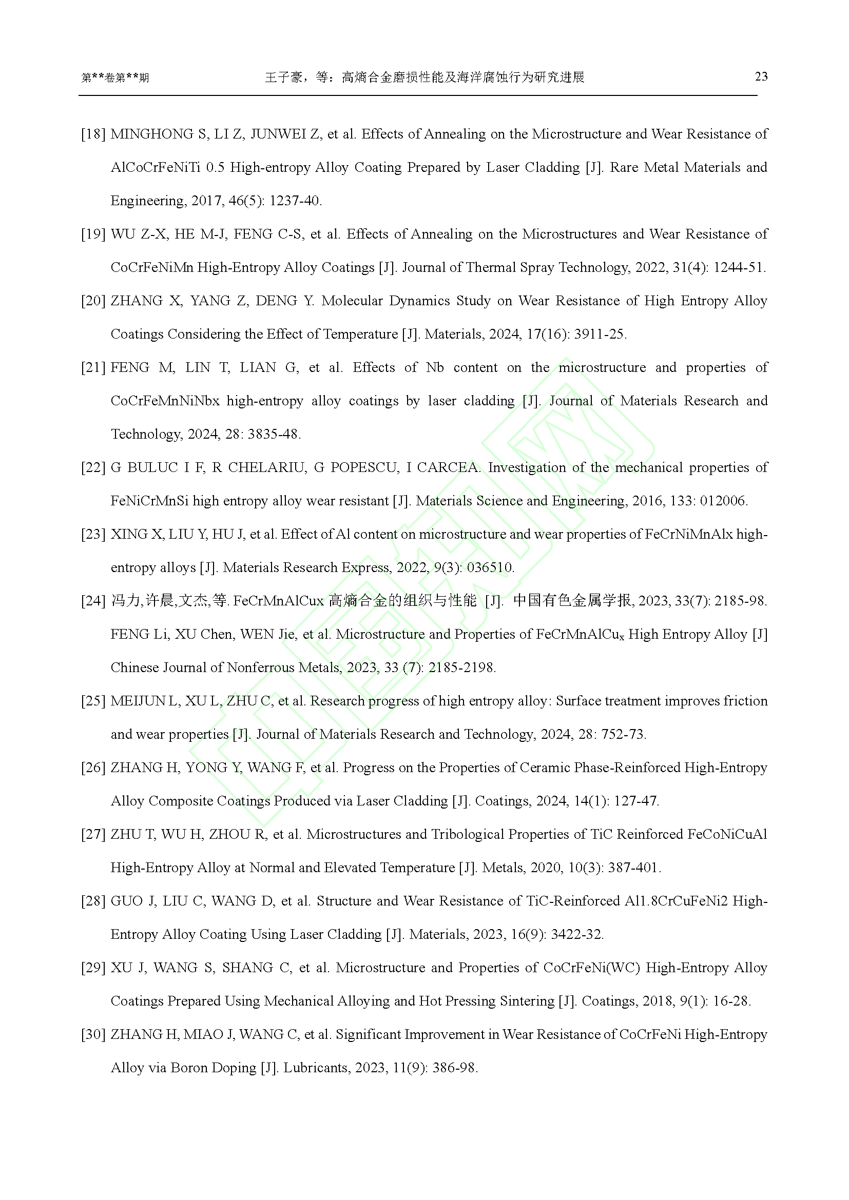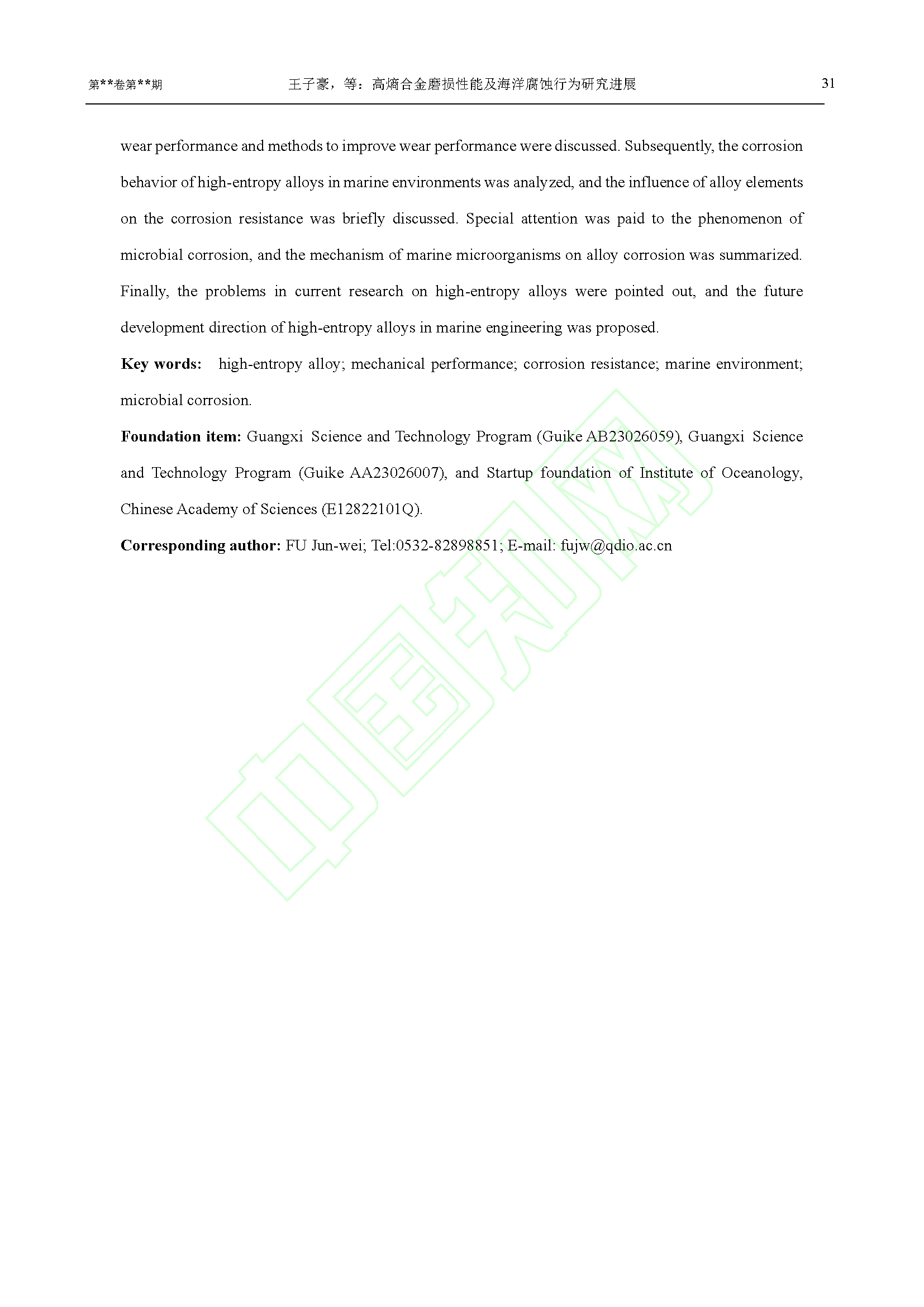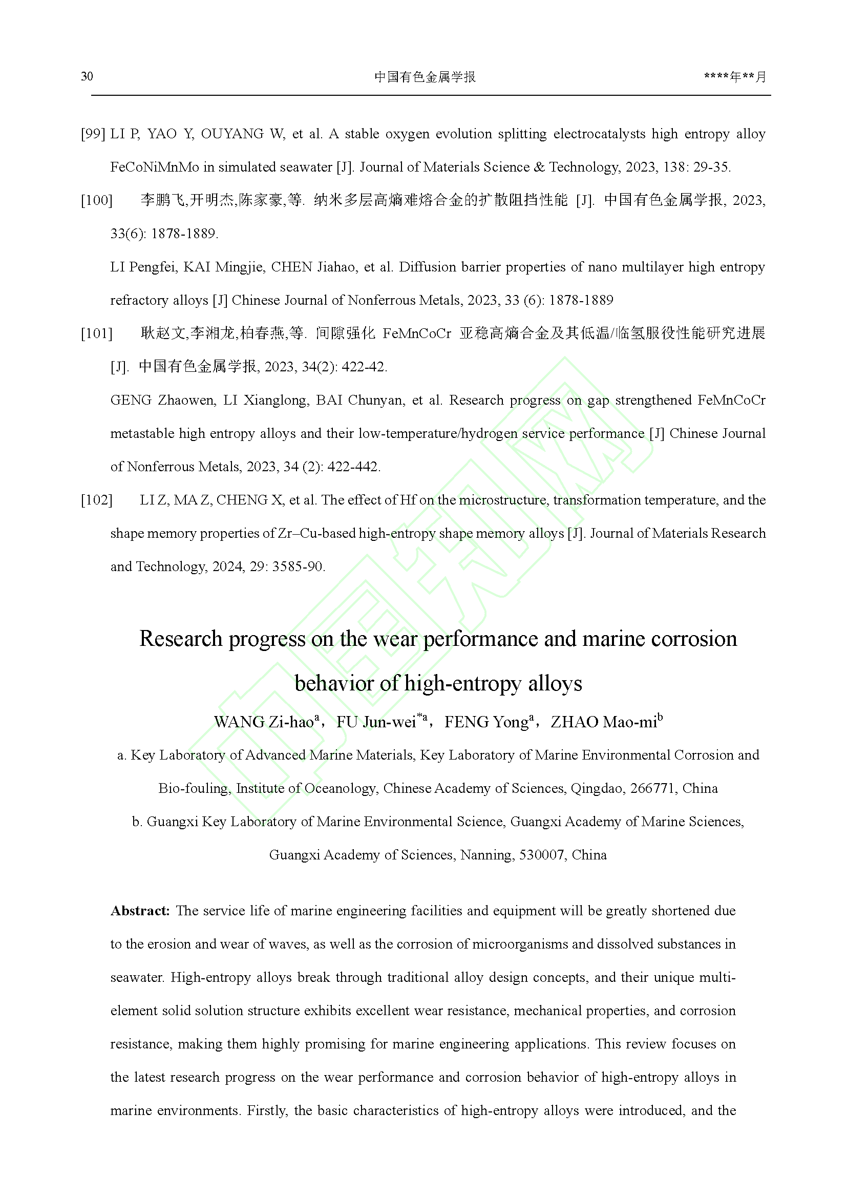 高熵合金磨损性能及海洋腐蚀行为研究进展