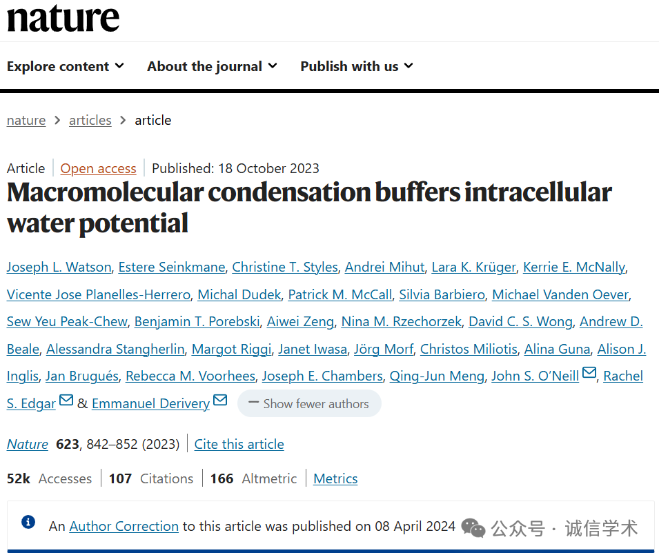 [11]诚信科研通过筛库,发现2023年10月18日,剑桥大学Emmanuel Derivery团队在Nature 杂志上发表题为“Macromolecular condensation buffers intracellular water potential” 的研究文章(2024年4月8日对更正过一次),文章内涉嫌2对图片重复使用。