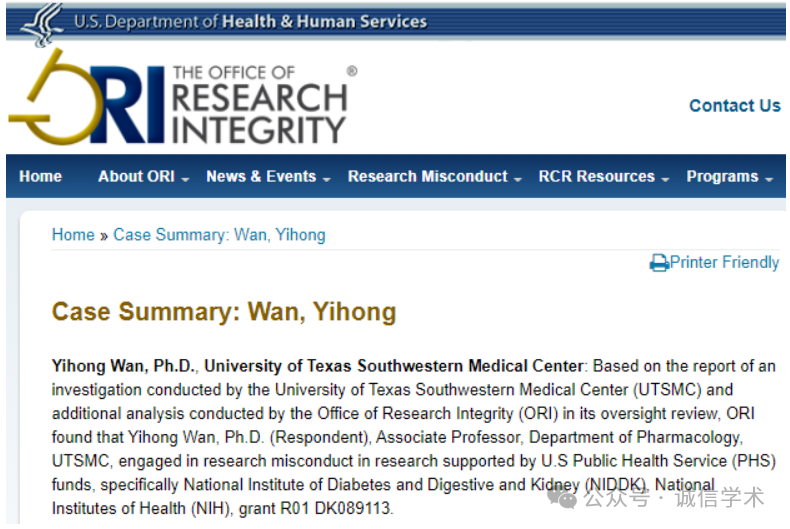 2020年12月21日,美国研究完整性办公室(ORI)发现,万一红伪造/更改数据,从事学术不当行为。