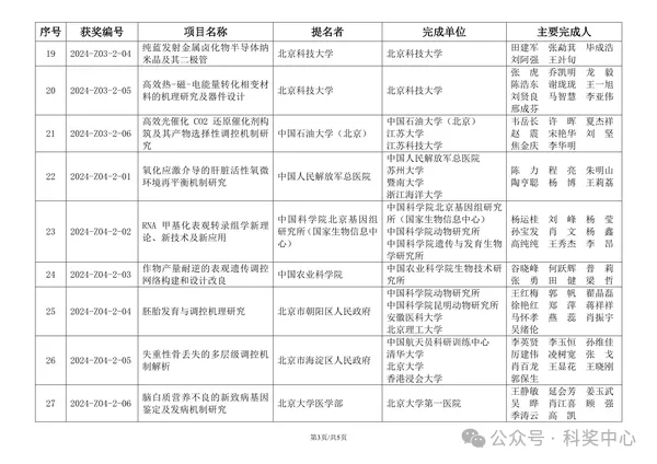 57项成果荣获自然科学奖,包括一等奖15项,二等奖42项;24项成果荣获技术发明奖,包括一等奖6项,二等奖18项;112项成果荣获科学技术进步奖,包括一等奖29项,二等奖83项。