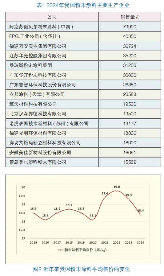 引言:2024年是新中国成立75周年,也是中国粉末涂料与涂装行业在复杂环境中迎难而上、开拓进取的关键之年。在国家“推进生态文明建设”“碳达峰、碳中和”等重大战略持续深化的背景下,绿色、低碳、可持续的发展理念已深入人心,成为推动经济社会转型的核心动力。这一切为行业带来新机遇的同时,也对我们提出了前所未有的新要求新挑战。这一年,随着国家“两新”政策(新基建与新消费)的逐步落地,消费市场活力增强,产业升级加速,绿色转型成效显著。这一年,随着“源头替代”工作的不断推进,涂料与涂装行业步入绿色发展新时期,越来越多的新兴领域开始关注并转向粉末涂装,市场上“漆改粉”乃至“水转粉”的呼声日渐升高。尽管粉末涂料传统应用领域面临较大的下行压力,但随着新兴领域的不断涌现,粉末涂料与涂装抓住了新的风口,继续保持增长态势。这一年,行业绿色制造体系不断巩固和发展,已有10余家企业获评国家级或省市级绿色工厂。这一年,中国粉末企业出海布局加速,已经有近20家企业在海外落地生根,不断拓宽国际视野,与世界一流企业同台交流,共谋发展。中国粉末涂料与涂装行业国际竞争力不断提升,继续引领着全球粉末涂料与涂装行业发展。 1.2024年我国粉末涂料行业运行概况 尽管当前房地产市场需求处于低谷,但“漆改粉”的转型浪潮却在工程机械、新能源(汽车、光伏、储能)、卷材、集装箱、输水管道等多个领域激发了粉末涂料需求的显著增长。随着国家生态环境部门大力推进源头替代,全面加强无组织排放控制,推进建设适宜高效治污设施,深入实施精细化管控,全面治理减排VOCs已经势在必行。业界也逐步兴起了以“能粉不水,能水不油,油推高固分”的原则,稳步推进大、中、小企业实施源头替代,倒逼涂装厂采用粉末涂装,这一现象近几年逐步增多,必将带来“液转粉”的加速,绿色发展为粉末涂料行业创造了最佳机遇期。 2024年颁布的涉及粉末涂料与涂装的重点政策有:①3月,国务院印发《推动大规模设备更新和消费品以旧换新行动方案》,旨在通过财政、金融等手段,刺激投资和消费,推动产业升级和绿色发展。②7月,在二十届三中全会精神指导下,工业和信息化部等九部门联合发布《精细化工产业创新发展实施方案(2024—2027年)》,重点推进涂料产业绿色转型,削减高VOCs涂料,推广粉末、水性等环保型涂料,促进技术创新,满足消费升级需求,助力美丽中国建设。③11月,江苏省人民政府发布《关于加快推动全省化工产业高质量发展的意见》,支持涂料等以物理加工为主要生产方式的区域特色产业进入合规园区整合集聚发展。 据中国化工学会涂料涂装专业委员会和全国涂料工业信息中心统计,2024年我国热固性粉末涂料销量265万t左右,比上年度增长6.6%(见图1)。综合来看,多数粉末涂料企业在2024年实现了净利润的提升,主要归因于原材料价格回落带来的成本压力缓解,整体毛利率水平有所改善。此外,部分企业还受益于销售收入的增长以及有效的成本管控措施,带动行业整体利润逐步修复。总体来看,粉末涂料行业仍处于成长期,但粗放式增长阶段已基本结束。 1.2 粉末涂料的应用领域变化 数据统计显示,在热固性粉末涂料领域,2024年建材(含暖通)粉末涂料市场份额为27.2%;一般工业用粉末涂料市场份额占22.3%;家电粉末涂料市场份额占18.8%;家具粉末8.9%;其他应用领域包括功能性(防腐)9.5%、农用工程机械及汽车9.4%、3C产品3.9%。2024年我国粉末涂料应用领域情况见图4,各领域整体走势见图5,基本与我国下游行业的运行情况及重点领域“漆改粉”趋势相一致。 1.3 粉末涂料地域分布情况 2024年长三角地区占45.3%左右,仍然占主导地位;珠三角地区占比27.8%左右,产量主要集中在广东省,广东省以建材、家电和五金为主(约占粉末用量80%左右),这几年受房地产、产业转移以及出口受限等因素影响,冲击比较大,整体呈下行趋势;环渤海地区占比16.5%,逐渐趋稳;中西部地区粉末涂料占比10.4%,高速增长几年后逐渐平稳(图6)。 1.4 粉末涂料固化体系的变化 统计显示,2024年我国热固性粉末涂料中,纯环氧粉末涂料占比19.2%,环氧/聚酯混合型粉末涂料20.5%,聚酯/TGIC型粉末涂料35.1%,聚酯/HAA型粉末涂料24.3%,其他类型粉末涂料占0.9%。总体来看,各体系之间占比切换主要受成本影响,纯聚酯体系粉末产品对其他常规体系替代进一步加大(图7)。2024年混合体系受TMA价格暴涨影响比较大。 2.1 建筑铝型材和工业铝型材呈冰火两重天态势 铝型材领域是粉末涂料应用的基石和最大的试验场。据中国有色金属加工工业协会发布数据,2024年我国建筑铝型材产量下降19.9%,工业铝型材产量增长23.2%,近三年建筑铝型材和工业铝型材一直呈现这种冰火两重天态势。反馈到上游粉末涂料领域,建材粉下行压力不断加大,价格战激烈;工业铝材对粉末的需求不断提升且产品迭代加速,因此需要粉末涂装协同工业铝材领域加强科技创新与产业创新融合,不断提高自主创新能力;加强新产品开发,培育新应用场景,助力持续扩大铝型材应用。 目前在建筑型材行业,受房地产下滑影响,工程铝型材用量减少,家装型材增多。家装市场特点主要以固定颜色为主,流行数个颜色,一般都会推荐几个主流颜色供客户选择,除非客户推出新的系列产品,才会有新的颜色。由于该特点,在颜色管理上相对容