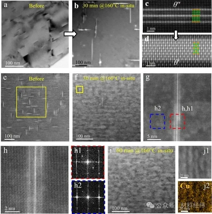 研究团队设计了更巧妙的实验:先对合金进行常规时效处理,生成大量 θ″ 或 θ′ 相,再进行原位加热引入高浓度空位。