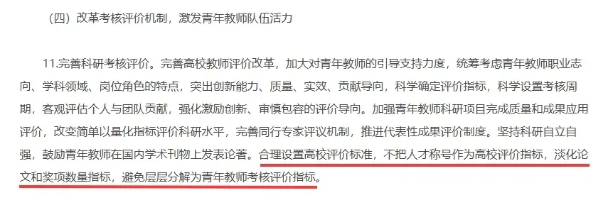 其中特别提出“完善高校教师评价改革,加大对青年教师的引导支持力度”。