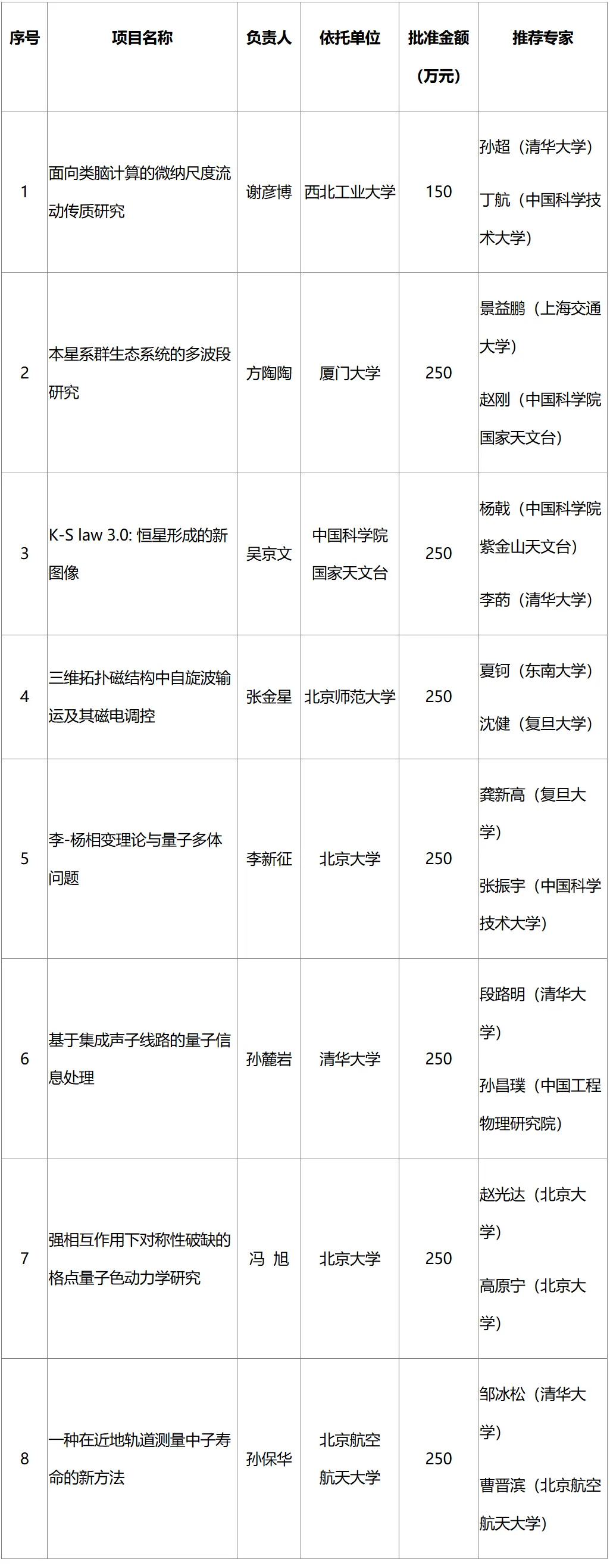 2025年度数理科学部专项项目(专家推荐类原创探索计划项目)资助结果公示