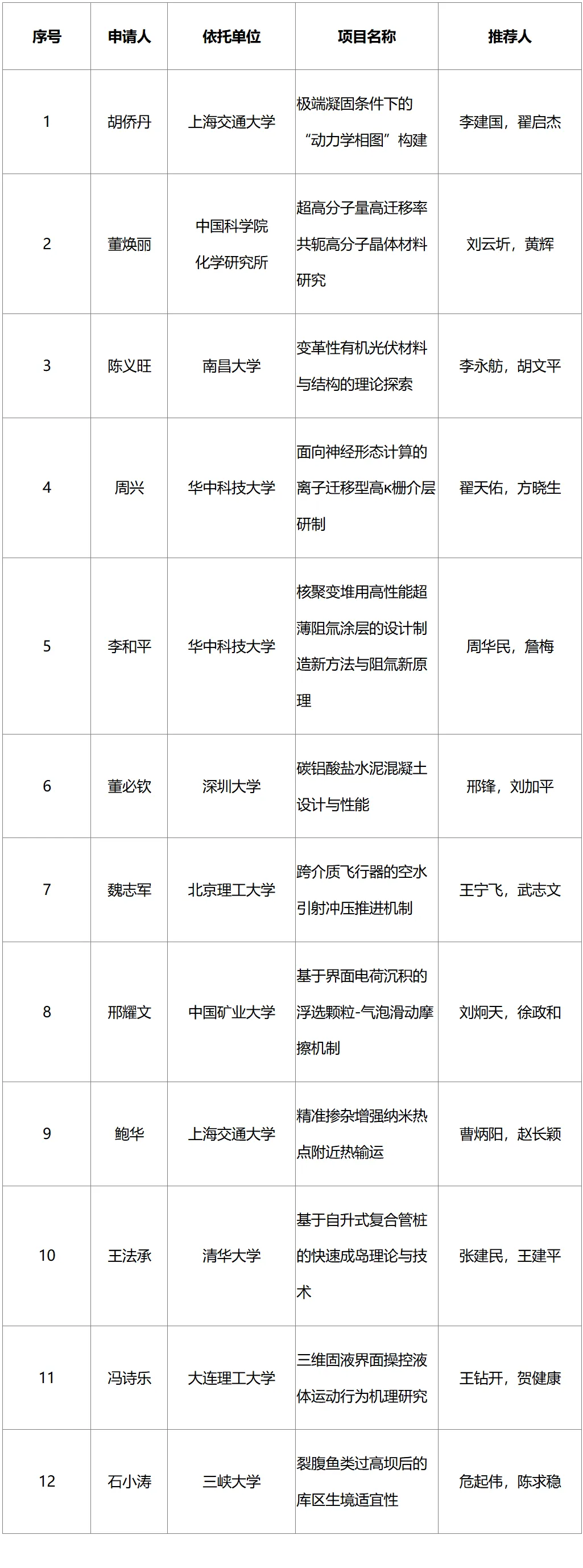 2025年度工程与材料科学部原创探索计划项目资助结果公示