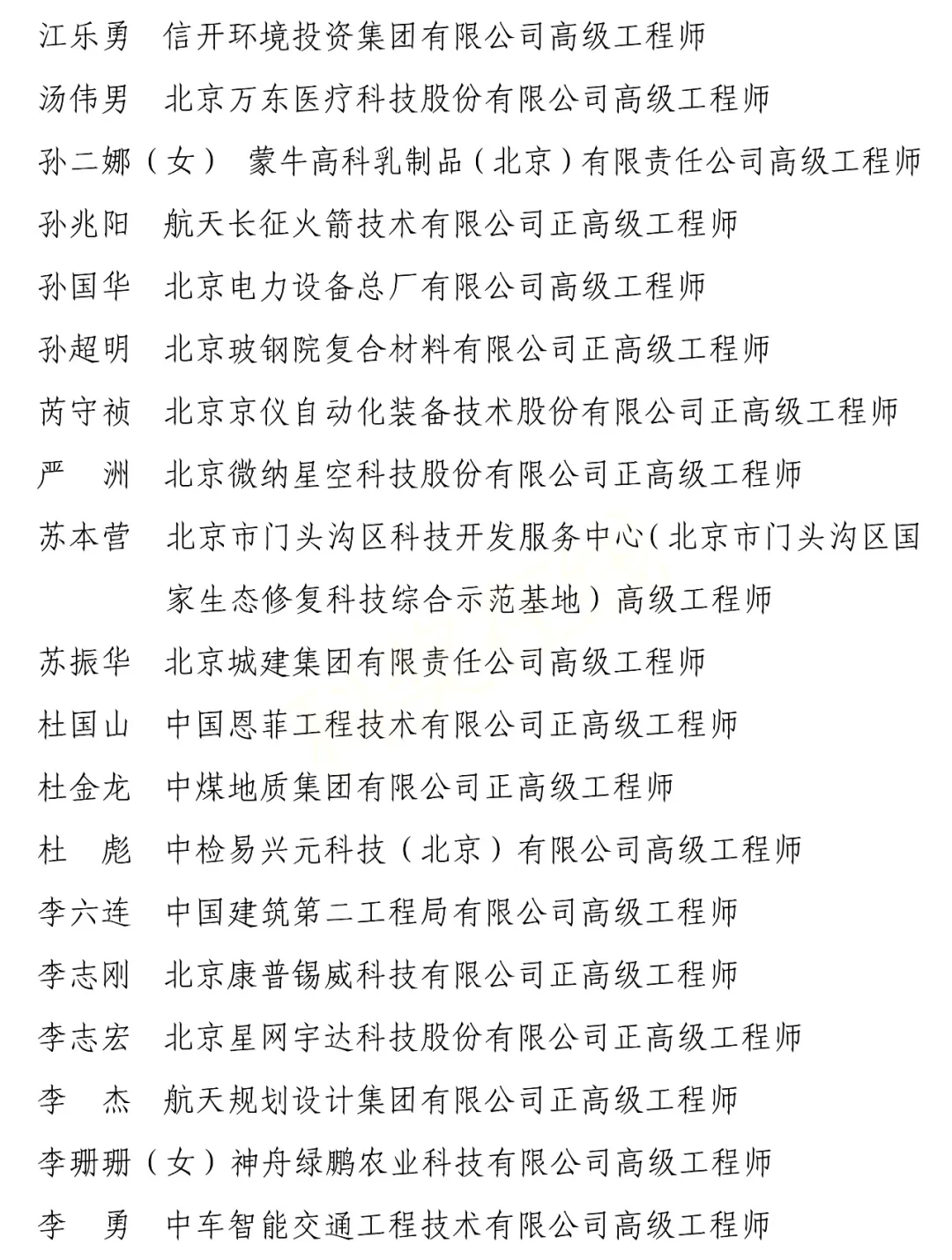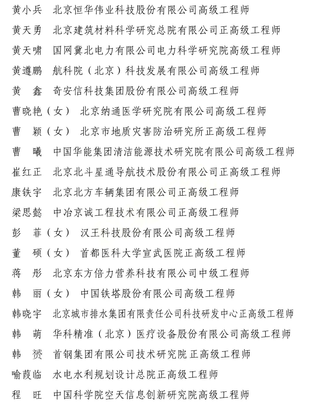 第二十五届北京优秀青年工程师表彰人选公示 按照《北京优秀青年工程师评选表彰工作方案》,北京市科学技术协会、北京市人力资源和社会保障局联合开展第二十五届北京优秀青年工程师评选表彰工作。经推荐、评审、考察,丁欢等229人拟入选第二十五届北京优秀青年工程师,丁一等19人拟入选第二十五届北京优秀青年工程师标兵。