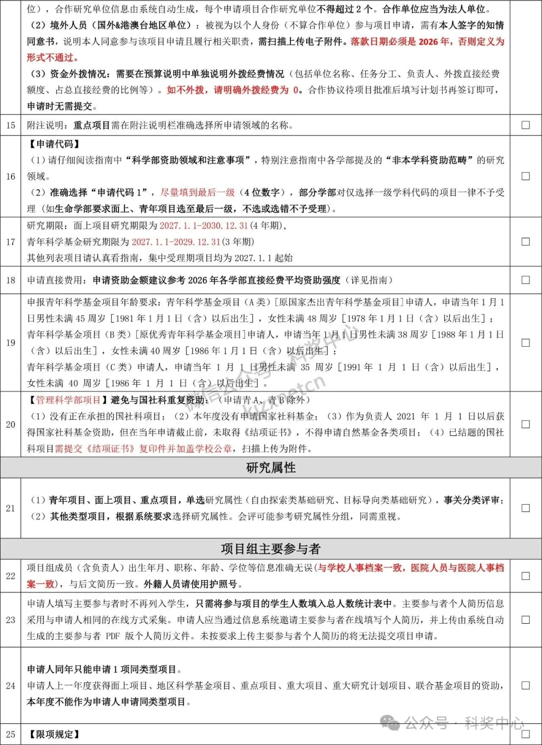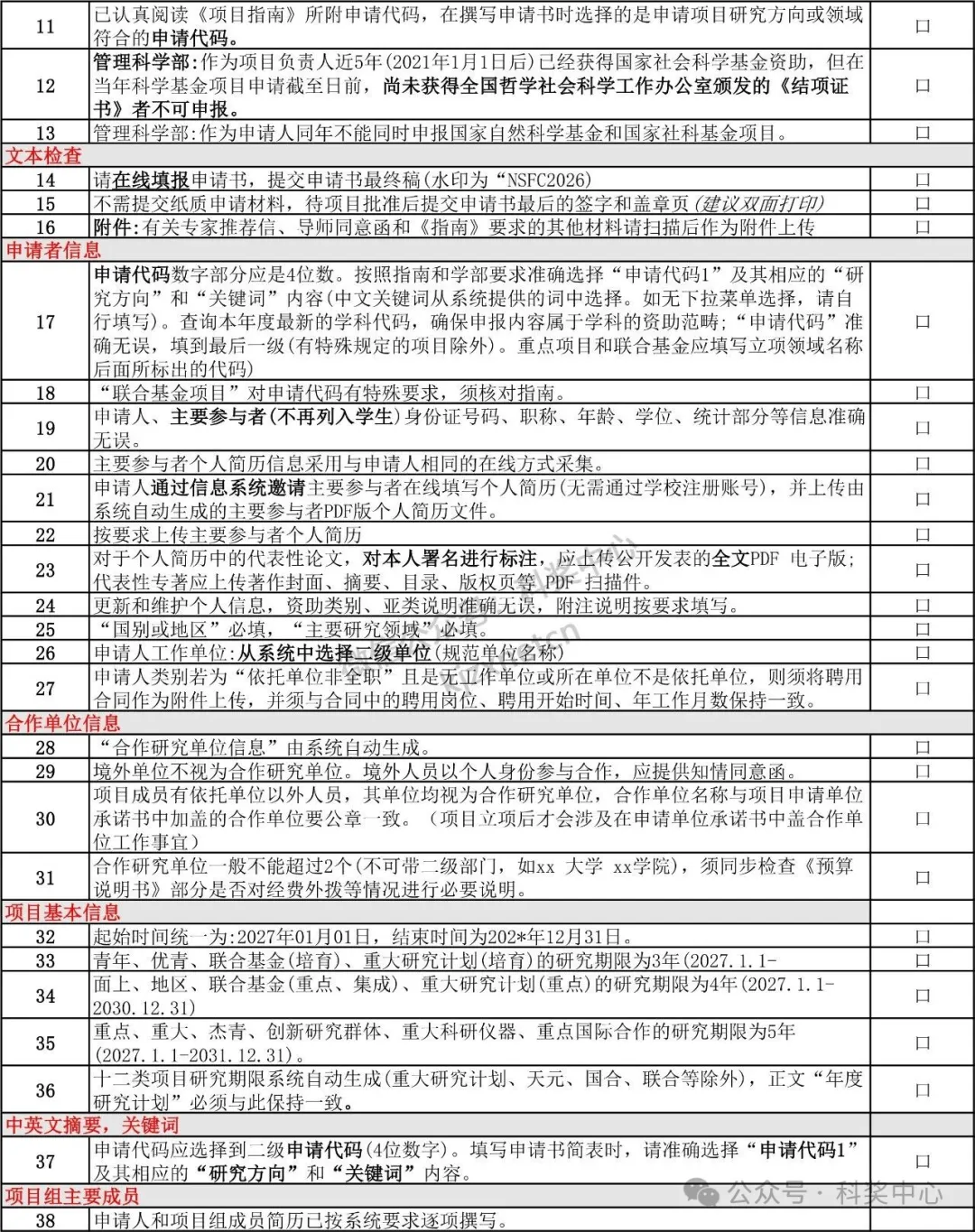 科奖中心从多所高校下载整理了两份2026年度国家自然科学基金项目形式审查自查表,请申请人自行下载打印自查。
