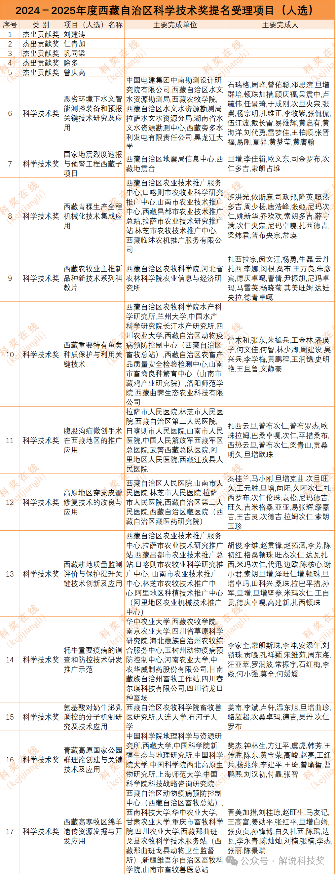 "2024-2025年度西藏自治区科学技术奖励提名工作已经结束。根据《西..."