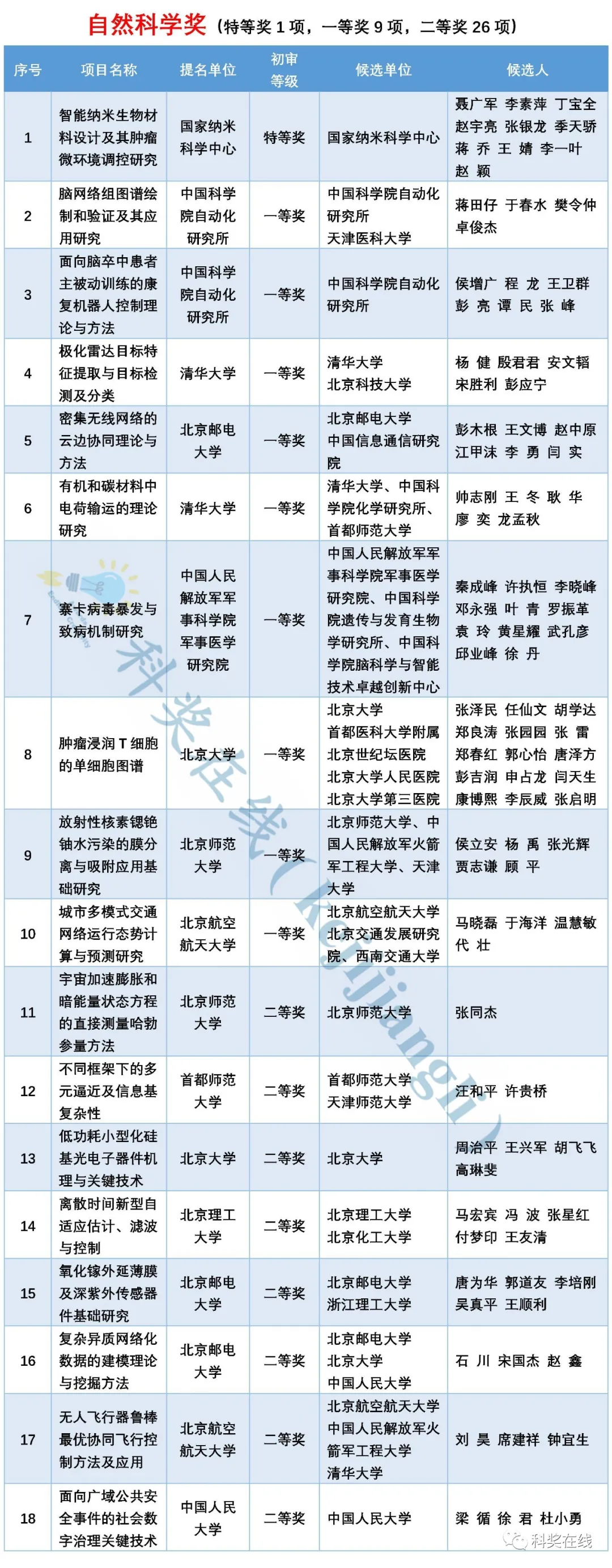 重磅:2020年北京市科技奖初审结果公布,特等奖9项,一等奖51项