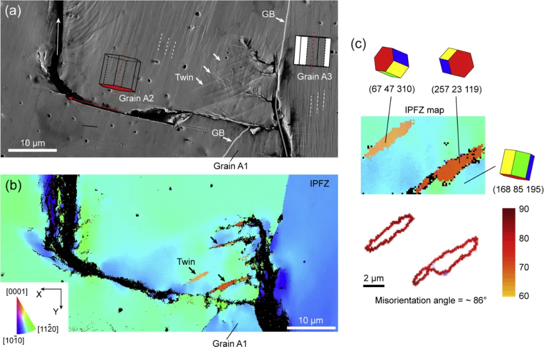 "本文通过原位扫描电镜(SEM)、电子背散射衍射(EBSD)和数字图像相关(DIC..."
