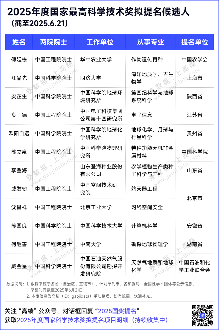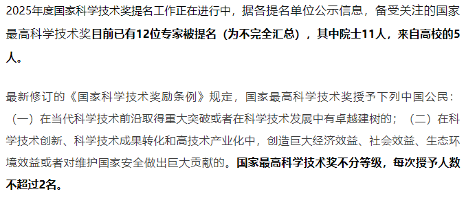 " 2025年度国家科学技术奖提名工作正在进行中,据各提名单位公示信..."