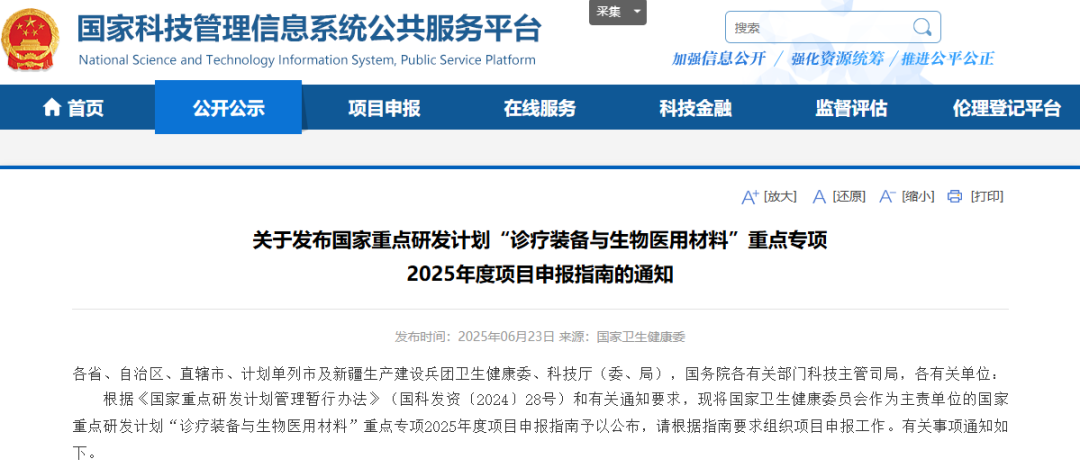 " 关于发布国家重点研发计划“诊疗装备与生物医用材料&rdqu..."